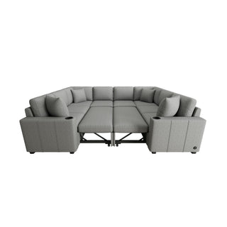 Modern U-Shaped Sectional Sofa Convertible Pull-Out Sofa Bed With USB Ports And Cup Holders