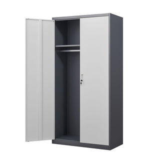 Wardrobe With Hanging Rod And Compartments, Lockable Closet With Locks & Keys For Bedroom - Gray