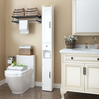 Slim Tall Bathroom Storage Cabinet With Adjustable Shelves, Anti Tip Freestanding Cabinet - White