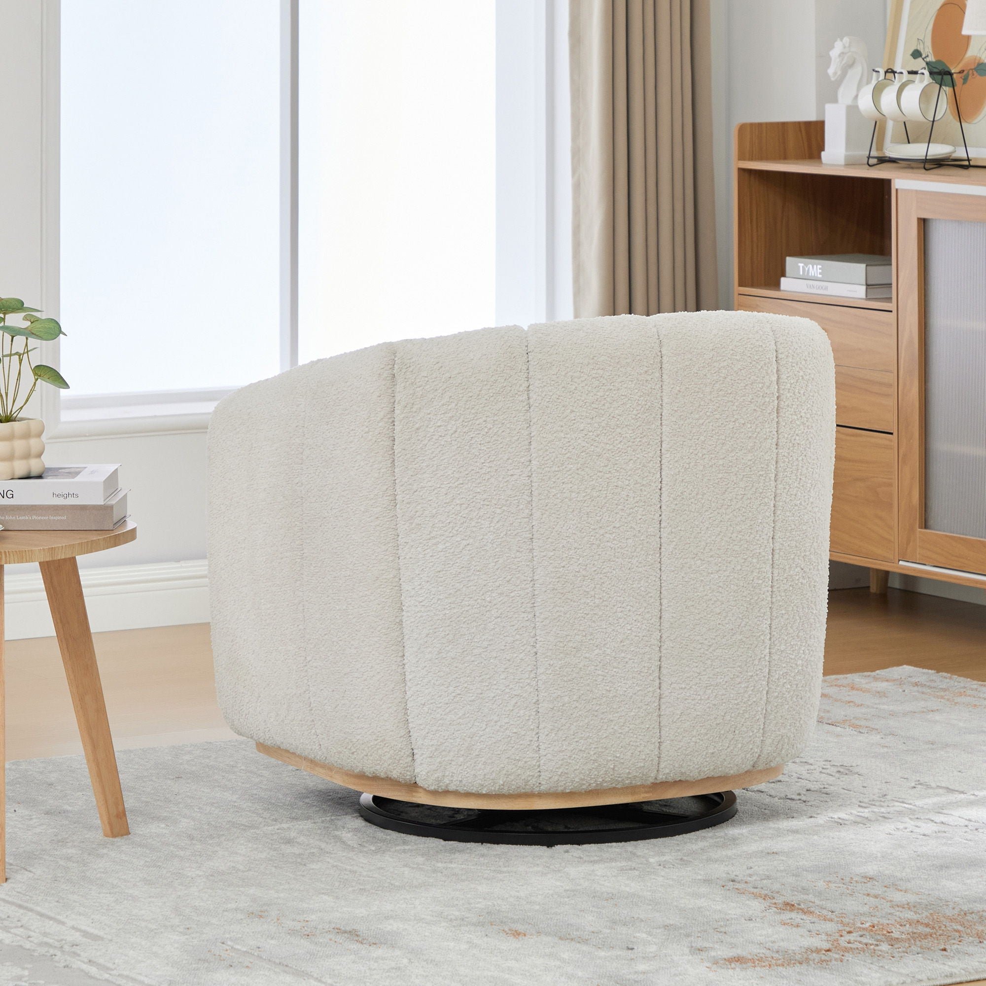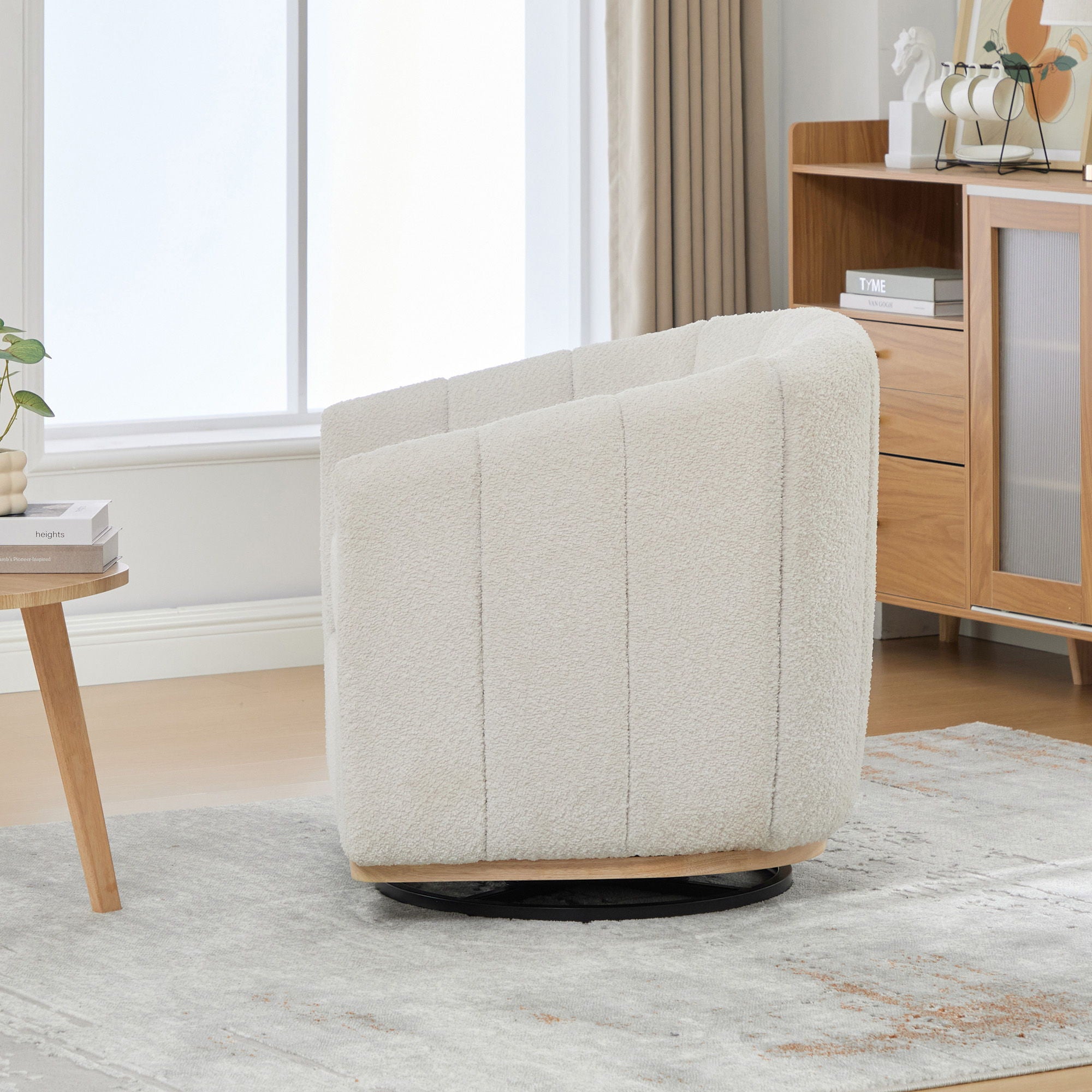 360 Degrees Swivel Upholstered Barrel Armchair For Living Room - Ivory
