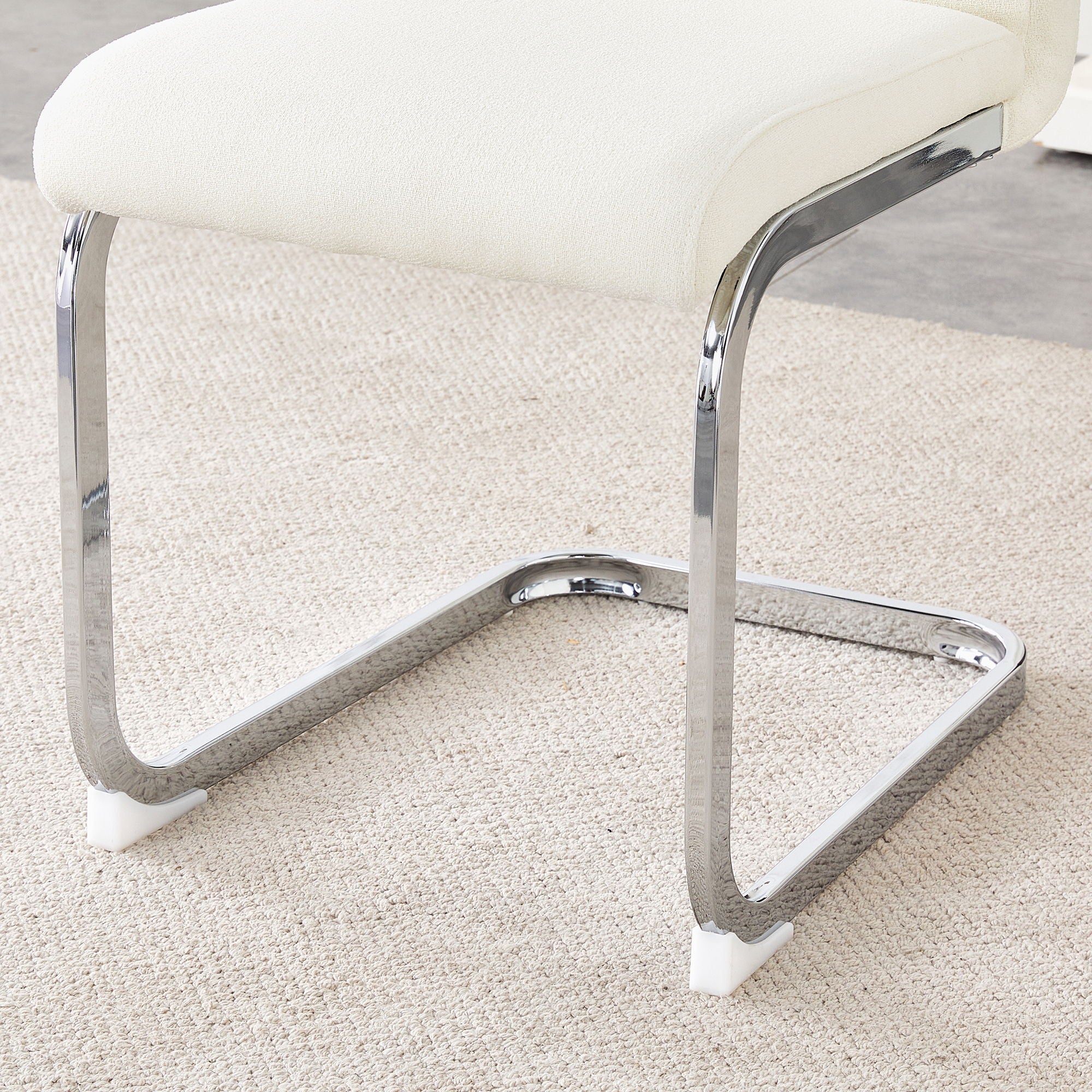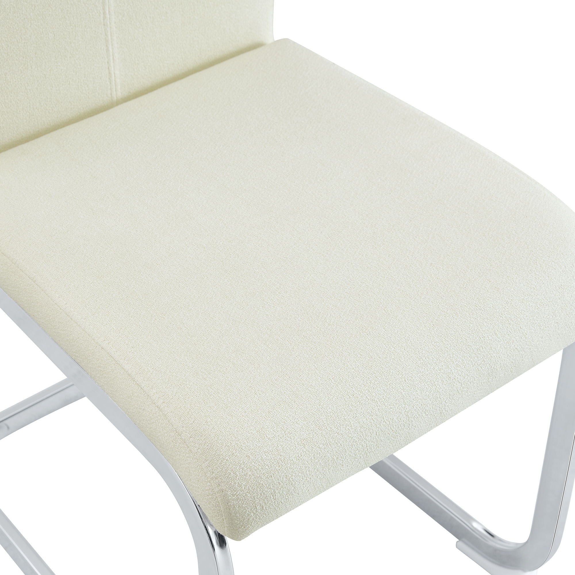 Dining Chairs Ergonomic Backrest, Deep Seat For Dining Room (Set of 4) - White / Silver