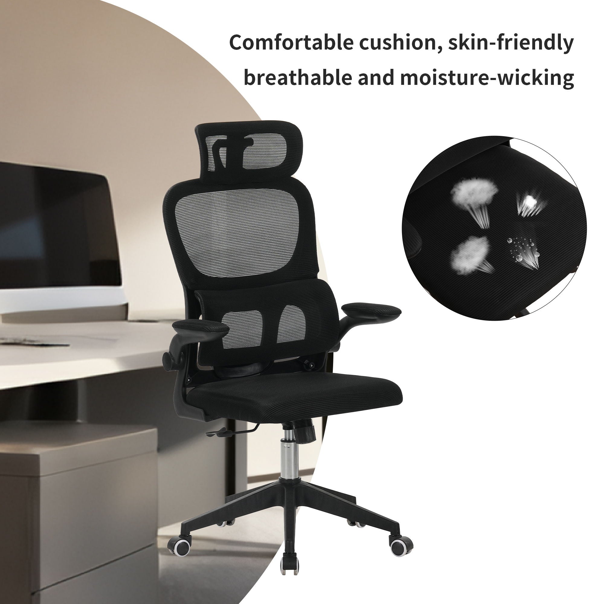 High Back Ergonomic Swivel Rolling Office Chair With Tilt Function, 3D Headrest, Lumbar Support - Black