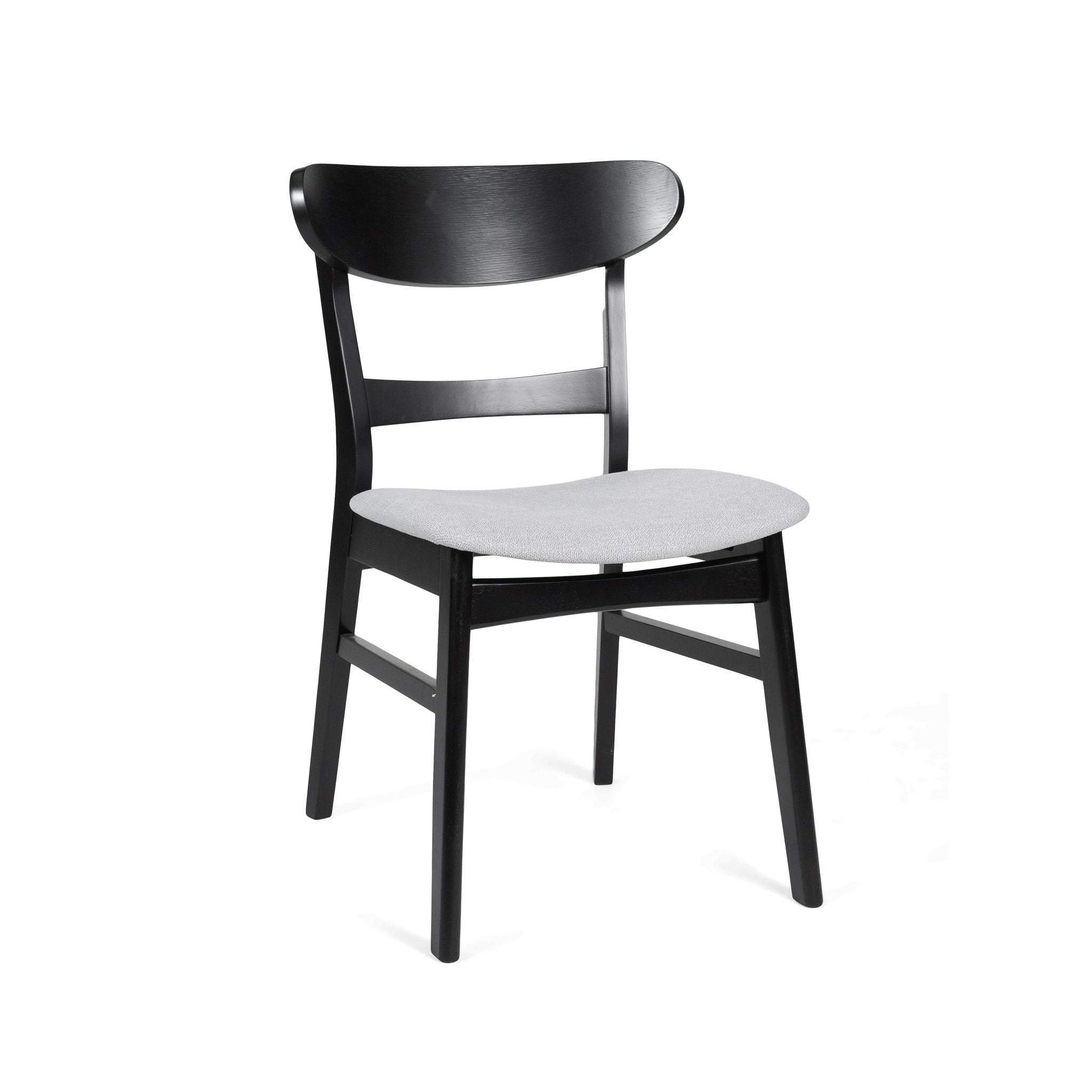 Dining Chair (Set of 2), Mid Century Dining Chairs With Cushioned Seats And Wood Frame - Light Gray / Black