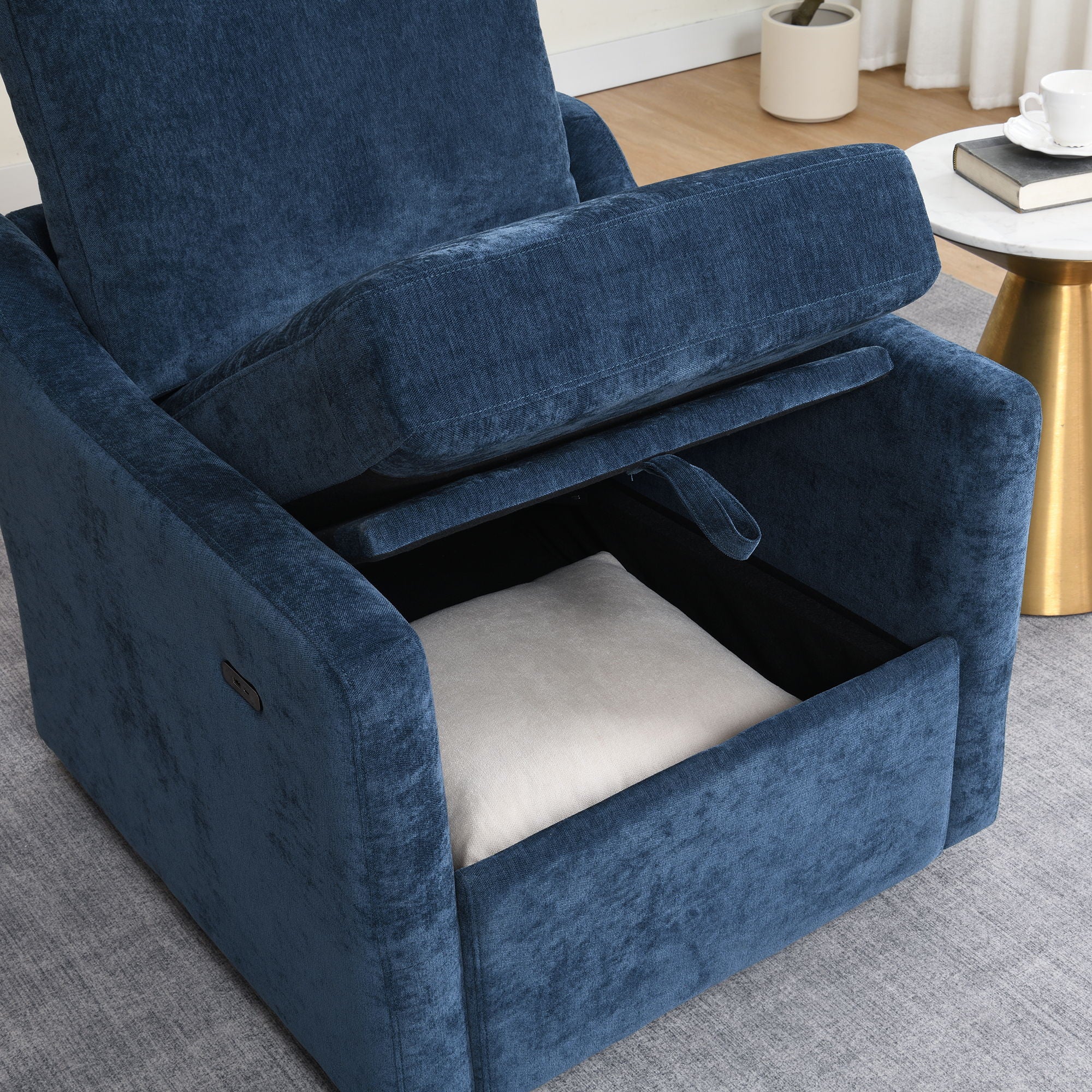 Swivel Arm Chair With USB Type-C Charging And Book Pocket - Navy Blue