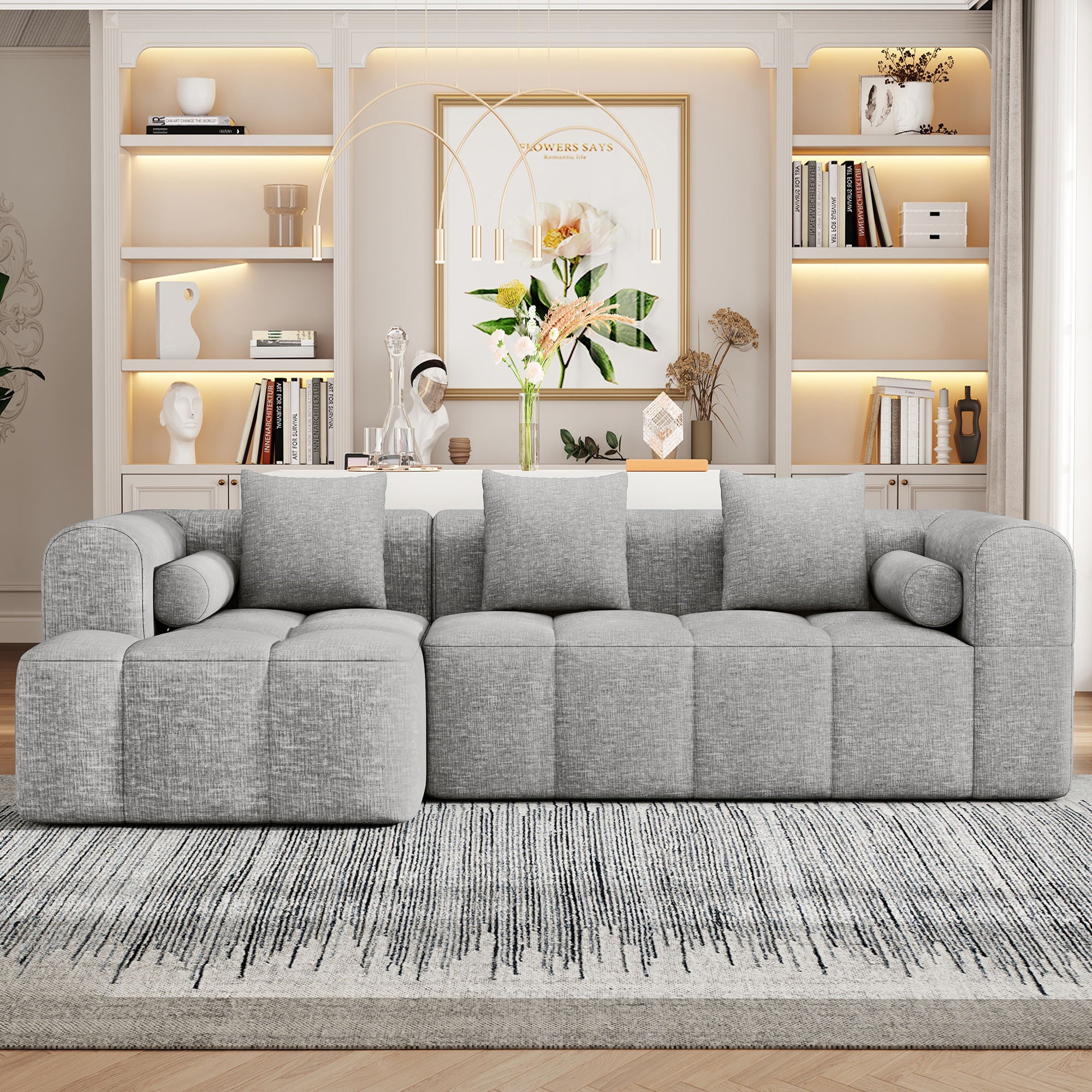 Sectional Sofa Full Compressed Sofa Modular Sofa Couch Free Combined Sofa With Deep Seating And 2 Side Pockets For Living Room - Gray