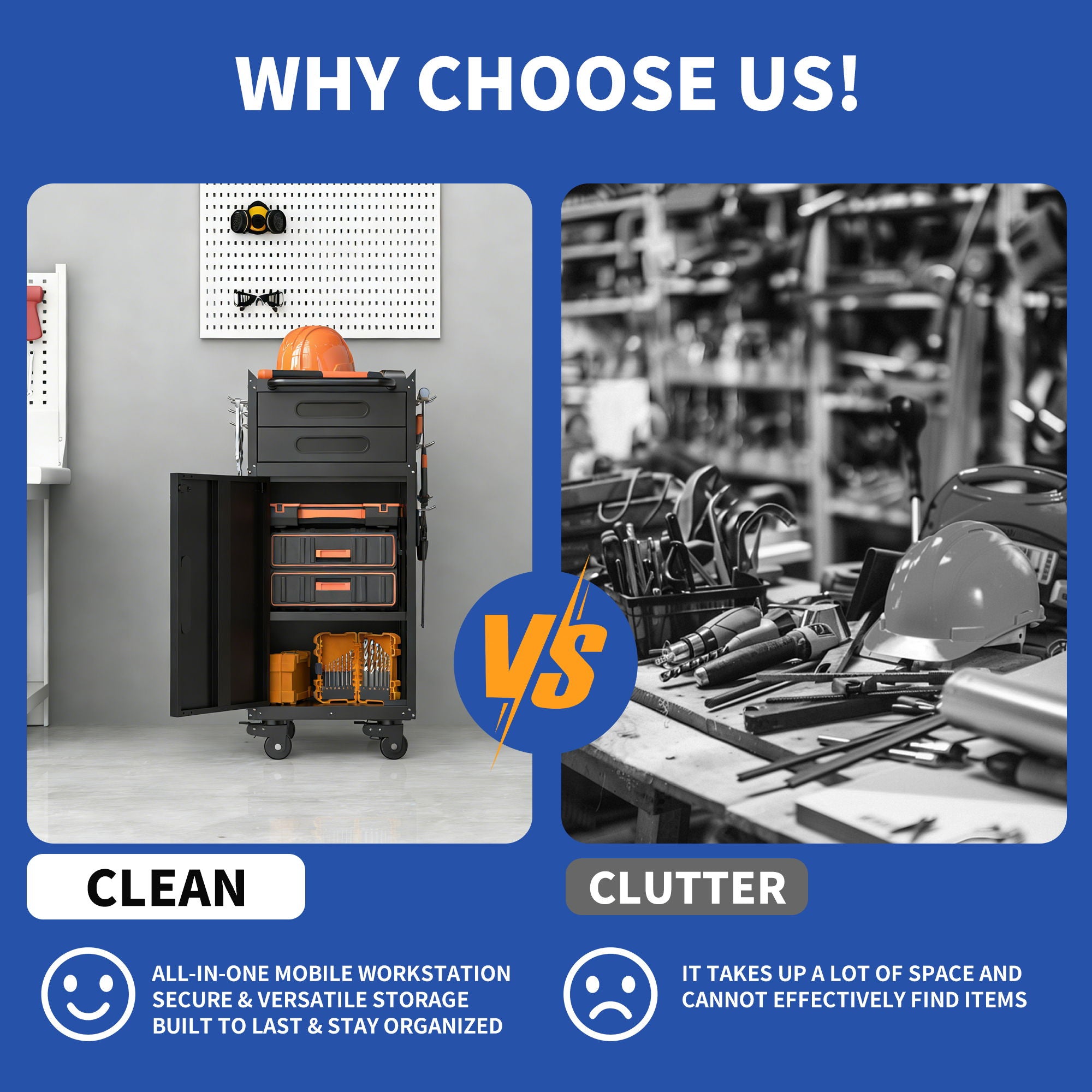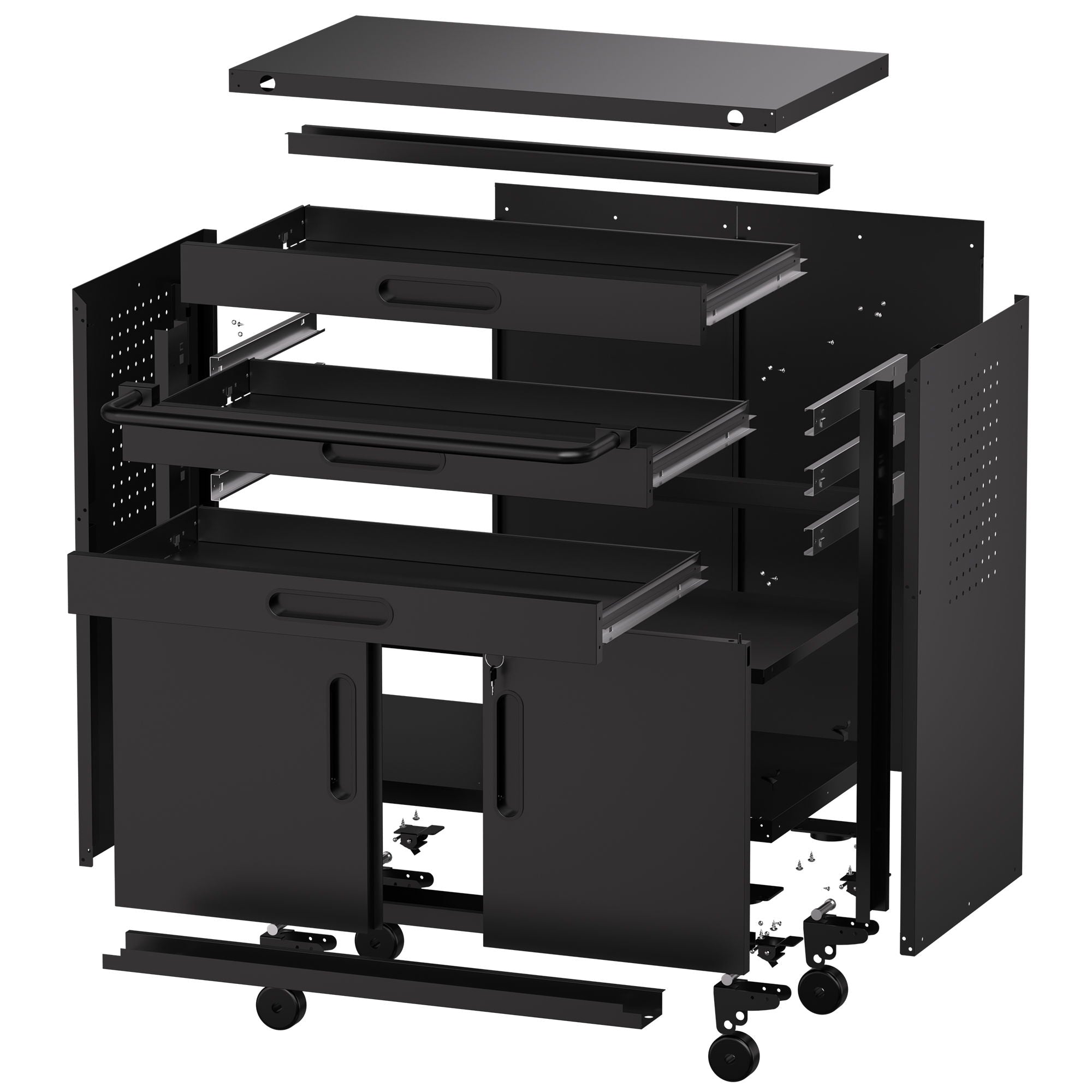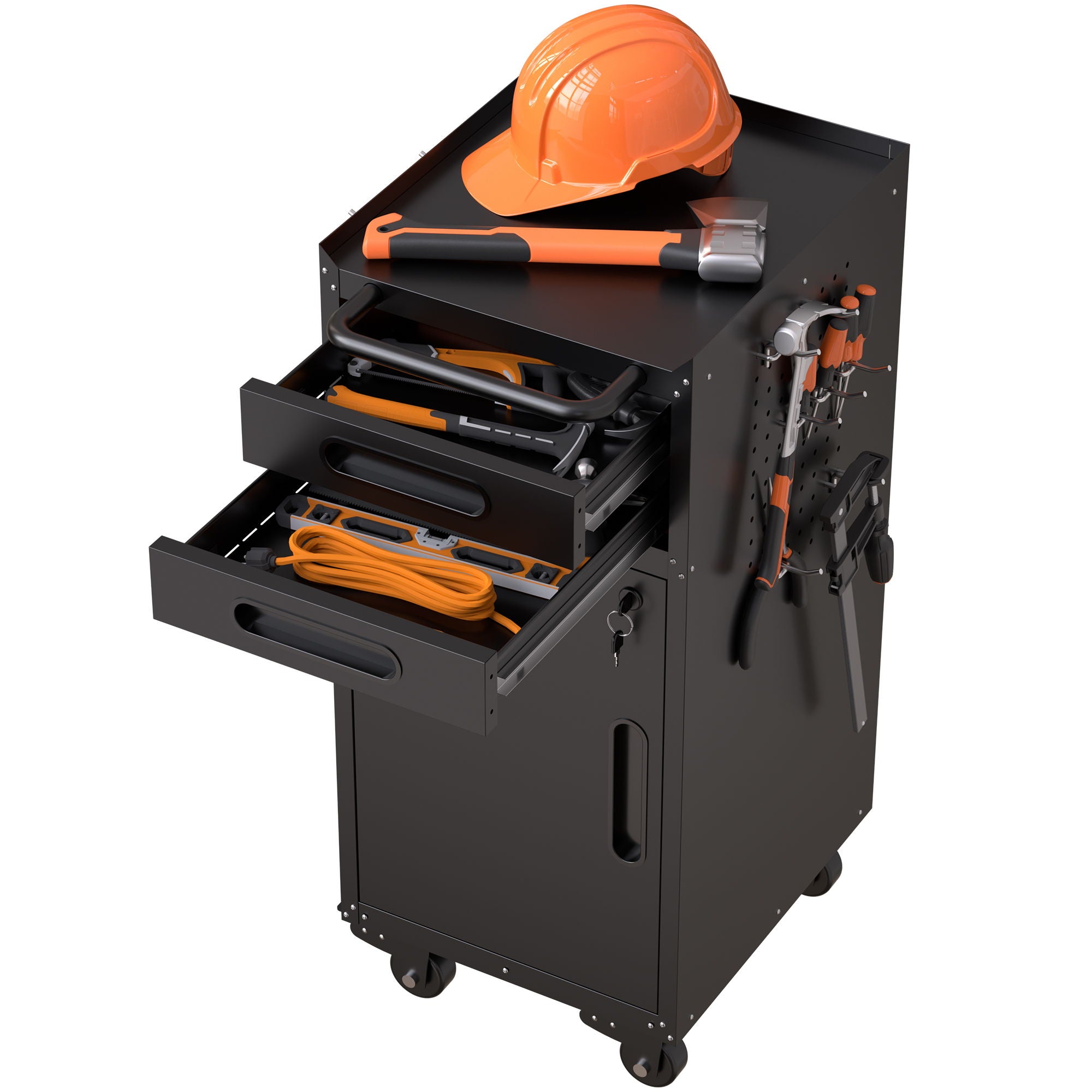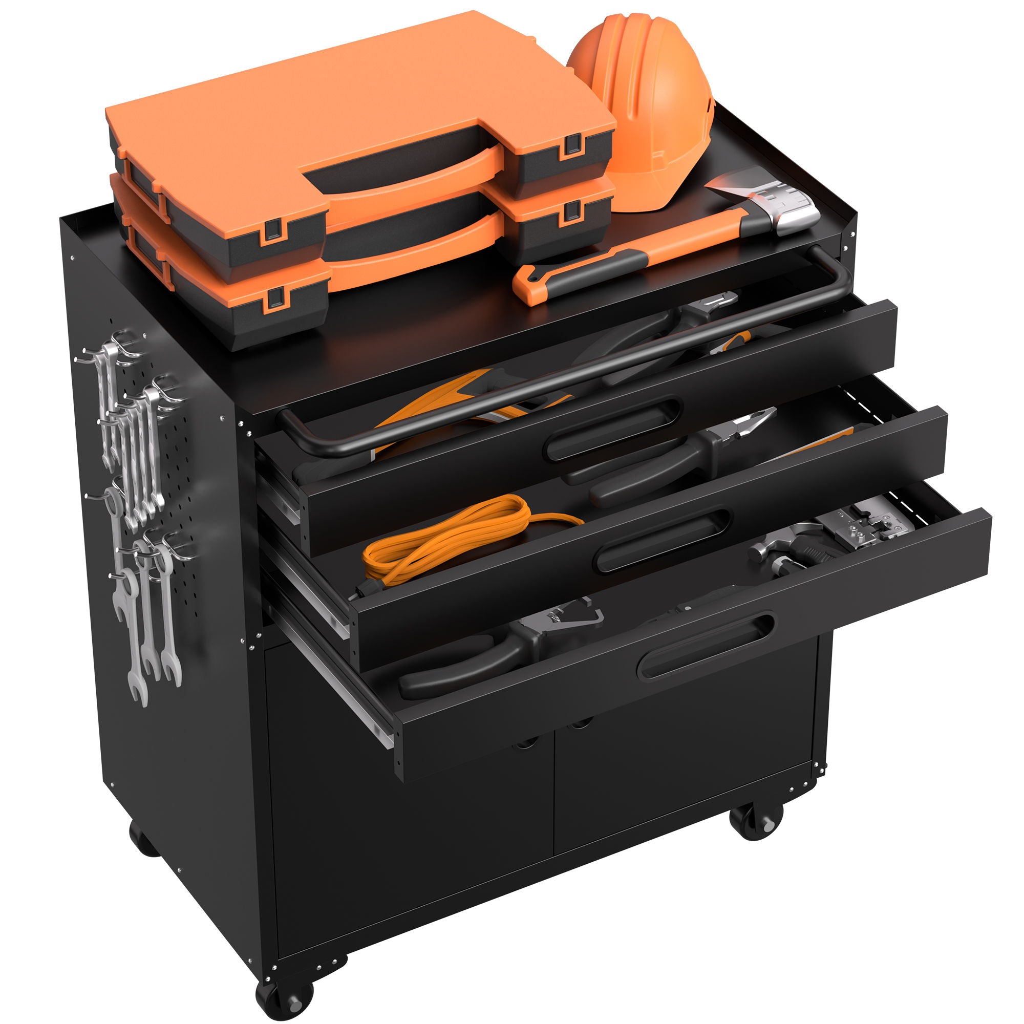 - BUILT TO LAST & STAY ORGANIZED: Powder-coated cold-rolled steel resists scratches; side panels double as pegboards for hanging frequently used tools.