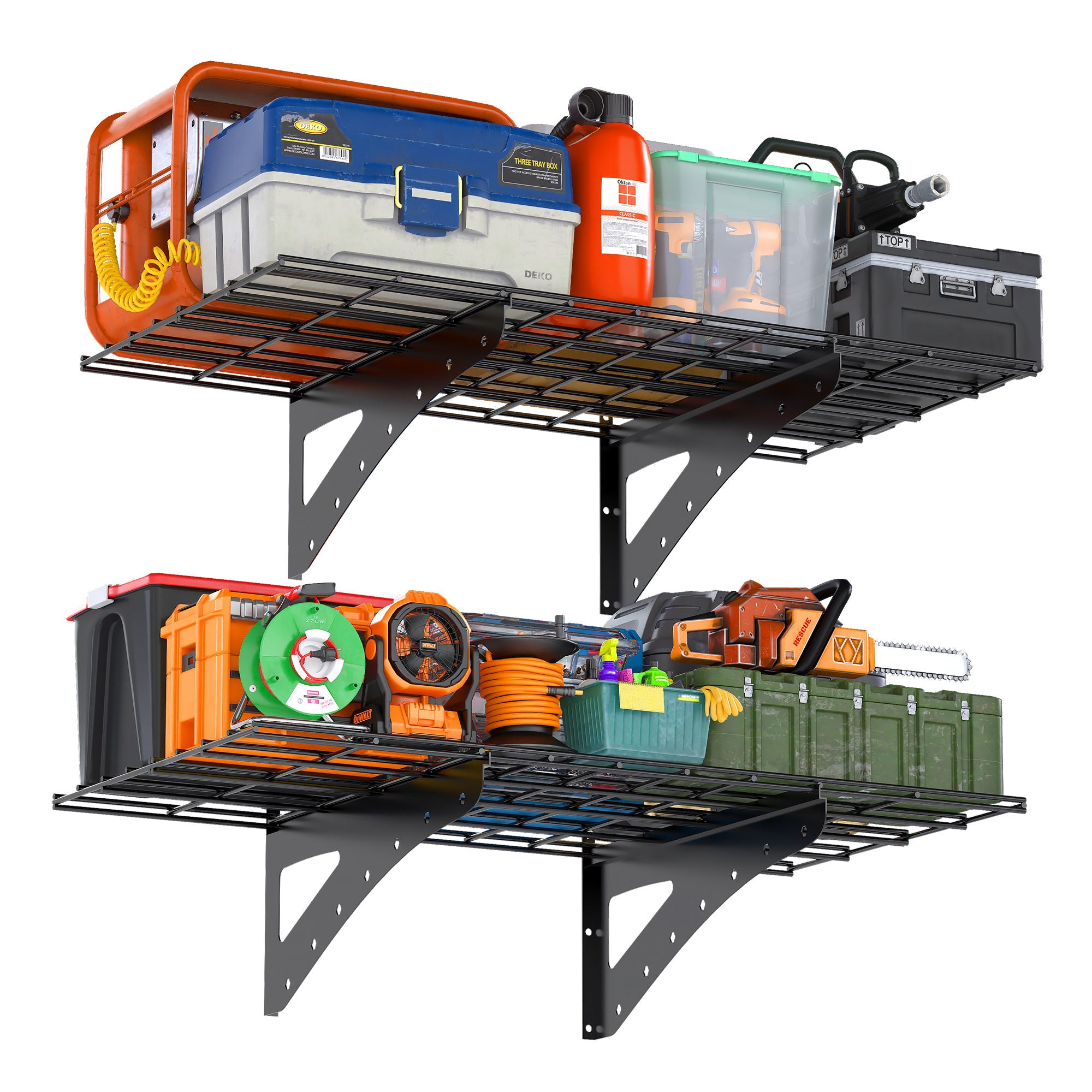 - [LARGE SIZE AND HIGH LOAD] This 2*3ft hanging wall rack is made of high quality metal, each tier can provide 200lbs of extra heavy load capacity.