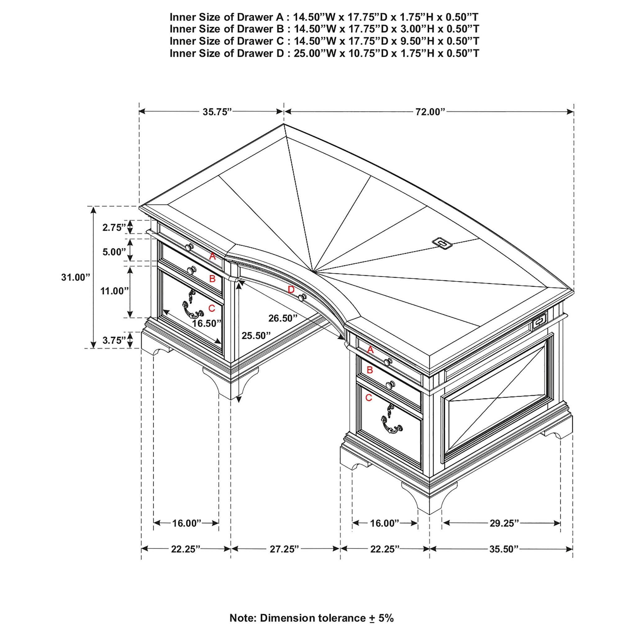 - Burnished Oak Finish: Elegant, warm-toned surface enhances office ambiance with timeless style