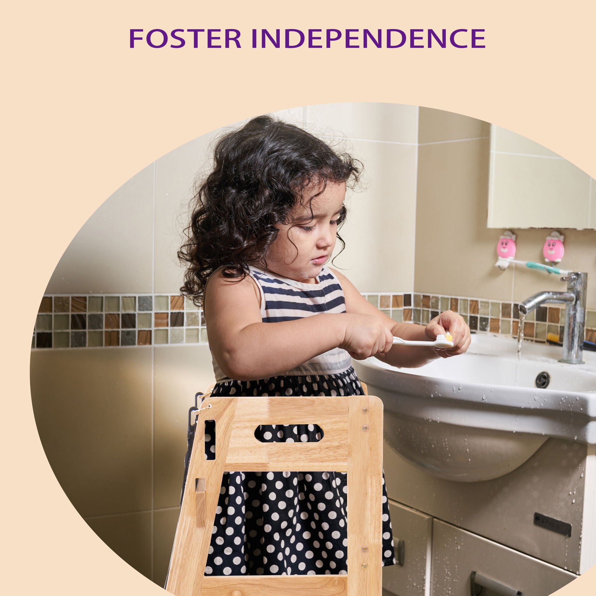 - Child Development: This toddler step stool aids in developing life skills by encouraging children to eat independently, wash hands, and brush teeth by themselves.