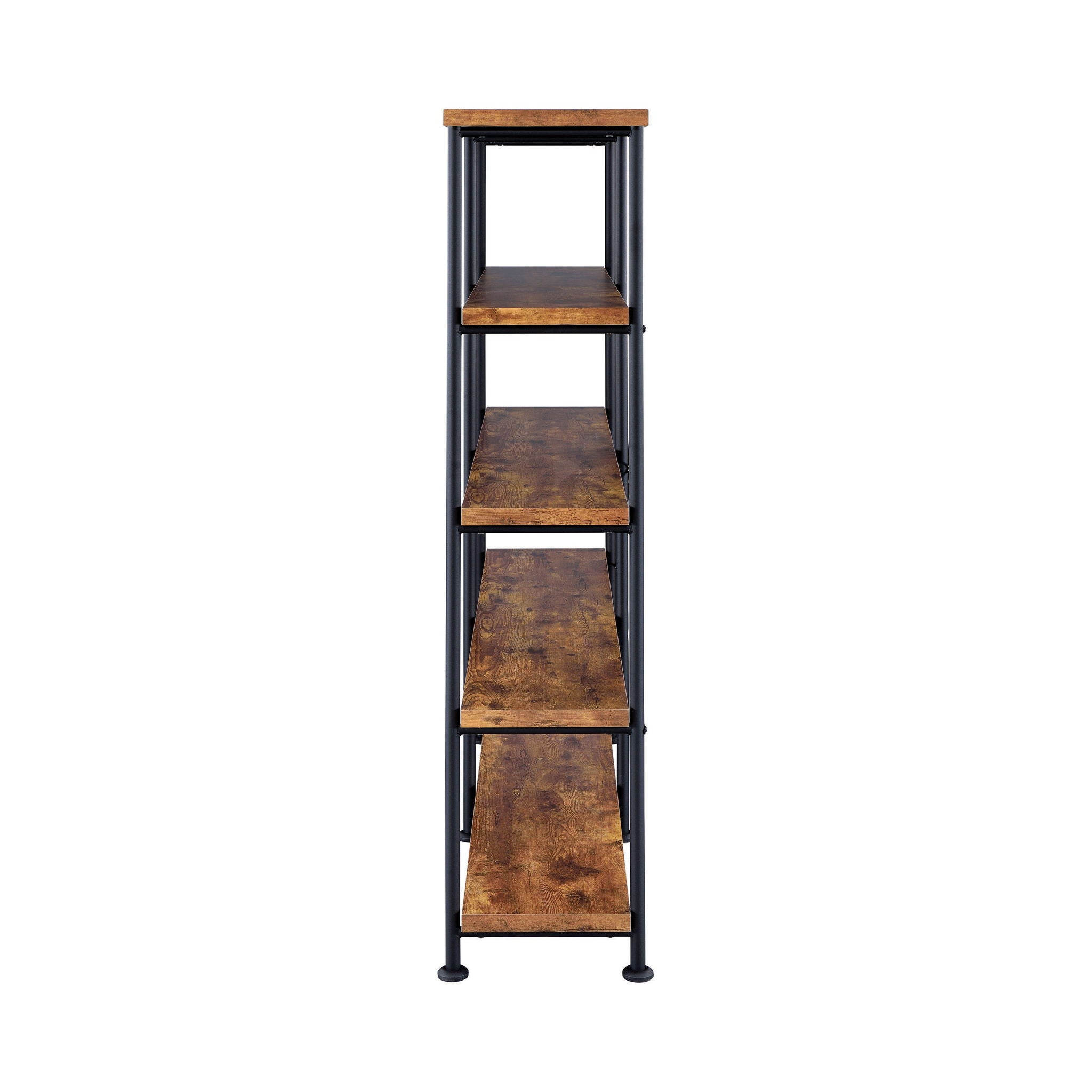 - Organizes books and decor with spacious four-tier design