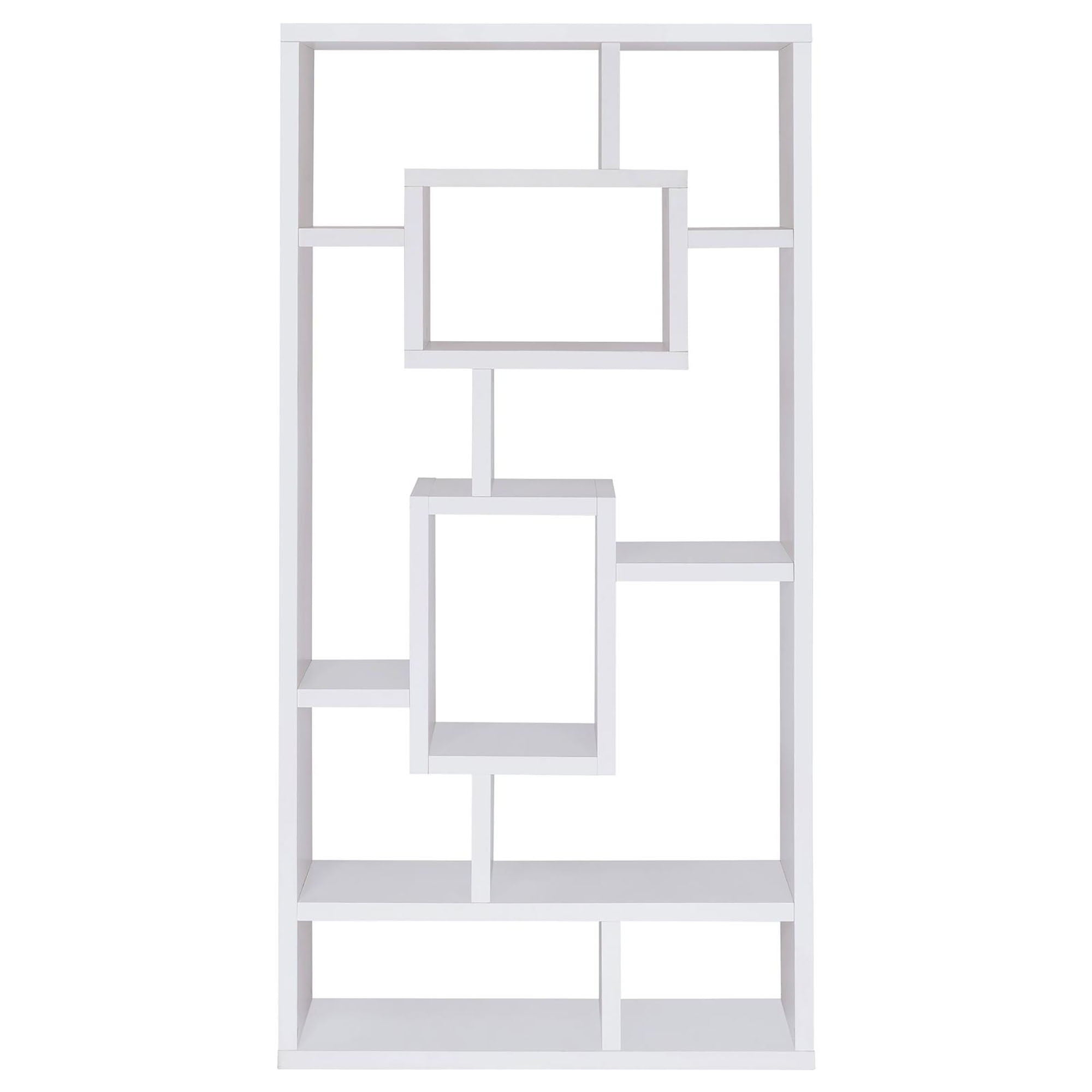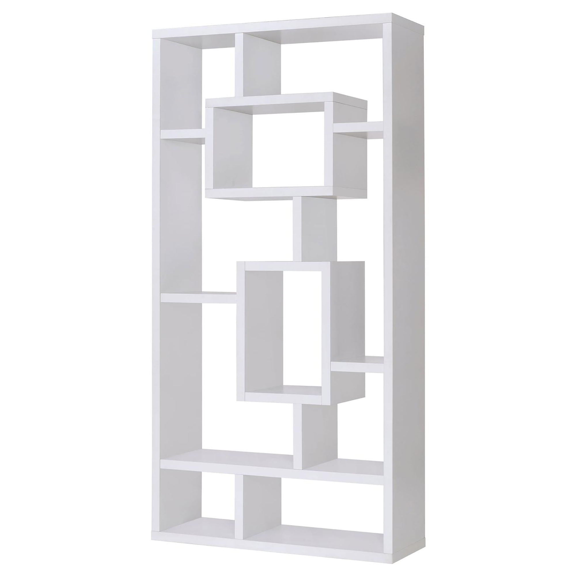 Geometric 10 Shelf Open Back Bookcase With Interlocking Shelves - White
