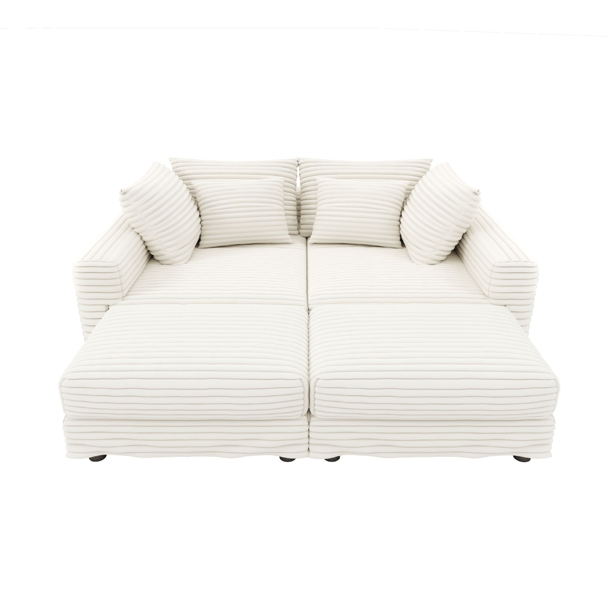 Plush Corduroy 4 Seat Sofa, Modern Comfy Upholstered Sofa Cloud Couch, Deep Seat Couches With Soft Pillows And 3 Ottomans, Convertible Sofa Lounge Chair, For Living Room, Apartment, Office - Beige