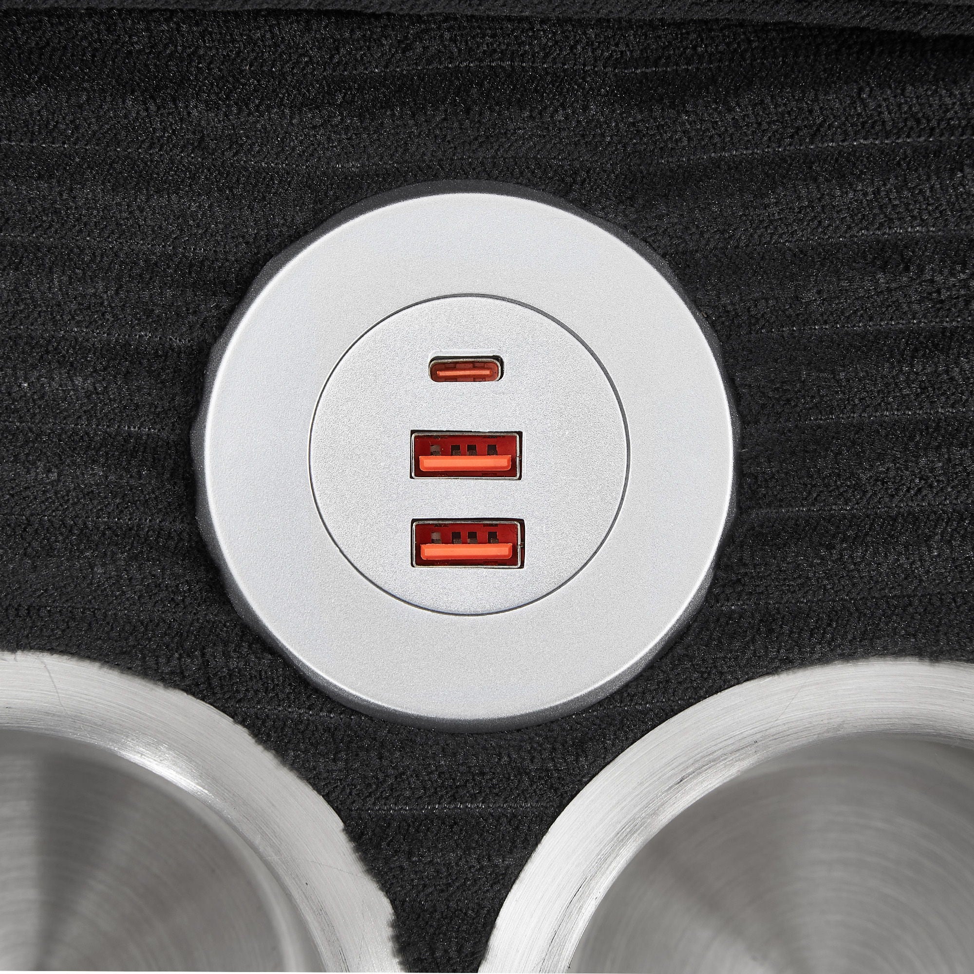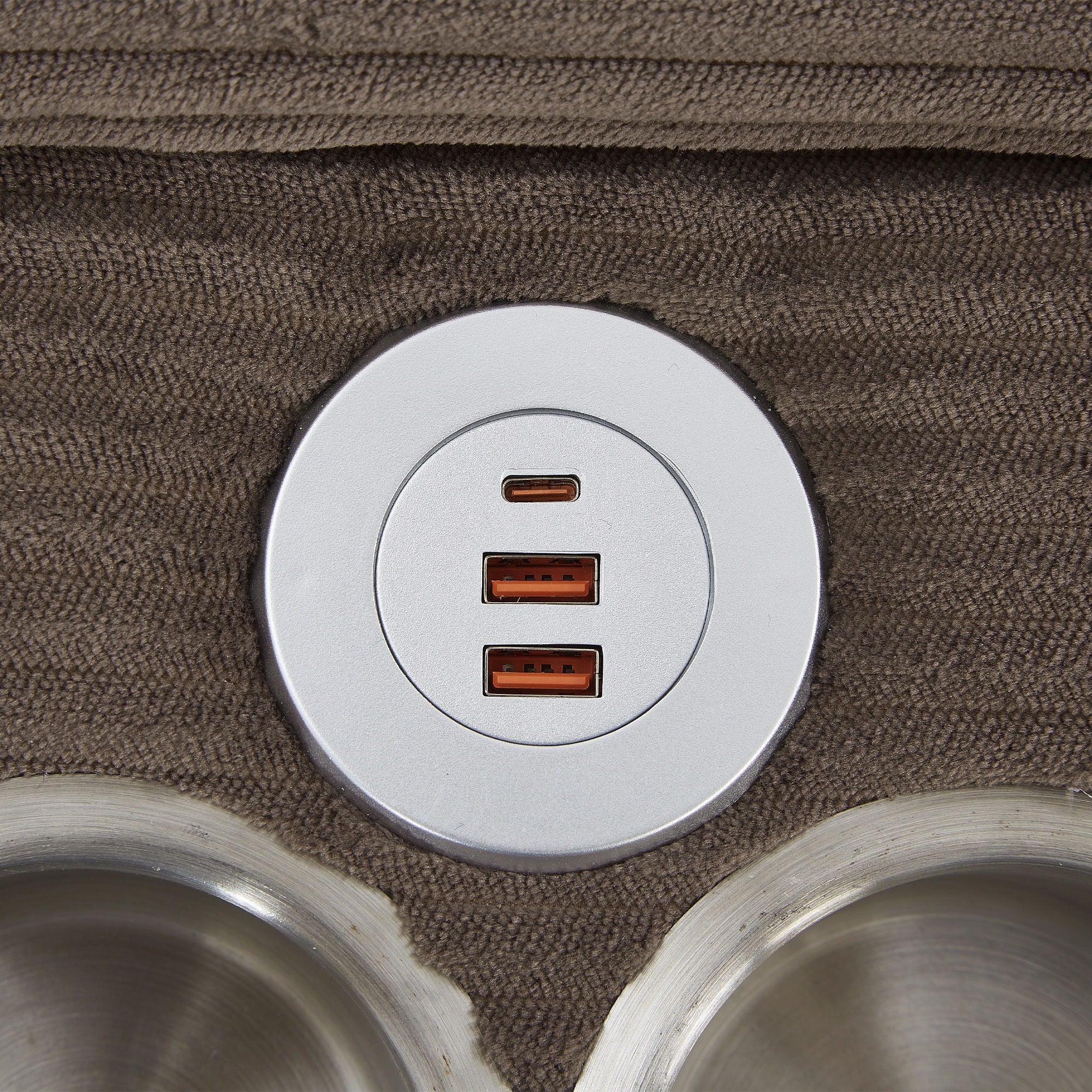 - Built-in Center Console: Includes storage, dual cup holders, and three USB ports for convenient device charging.