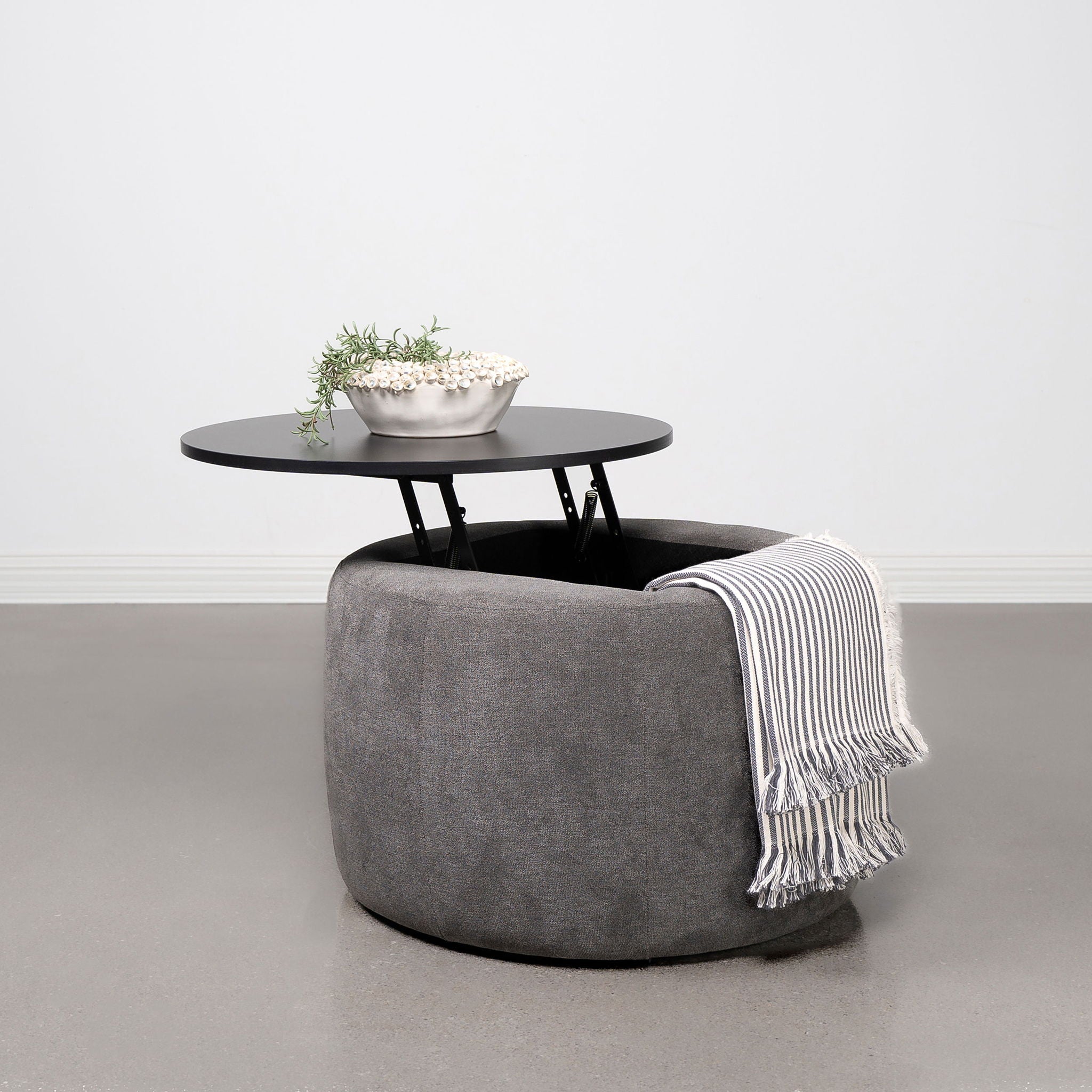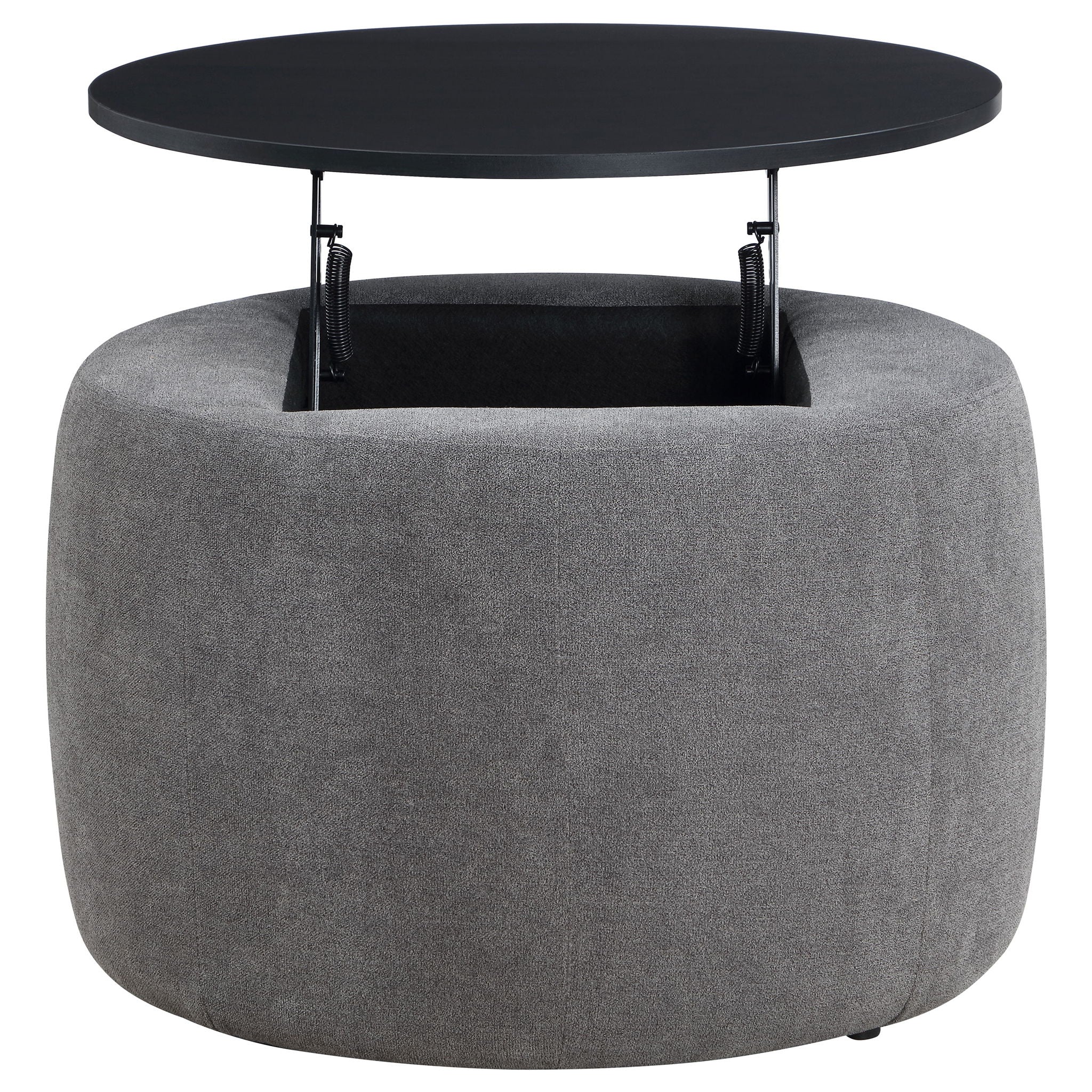 Reeves - Round Upholstered Lift Top Storage Ottoman - Gray