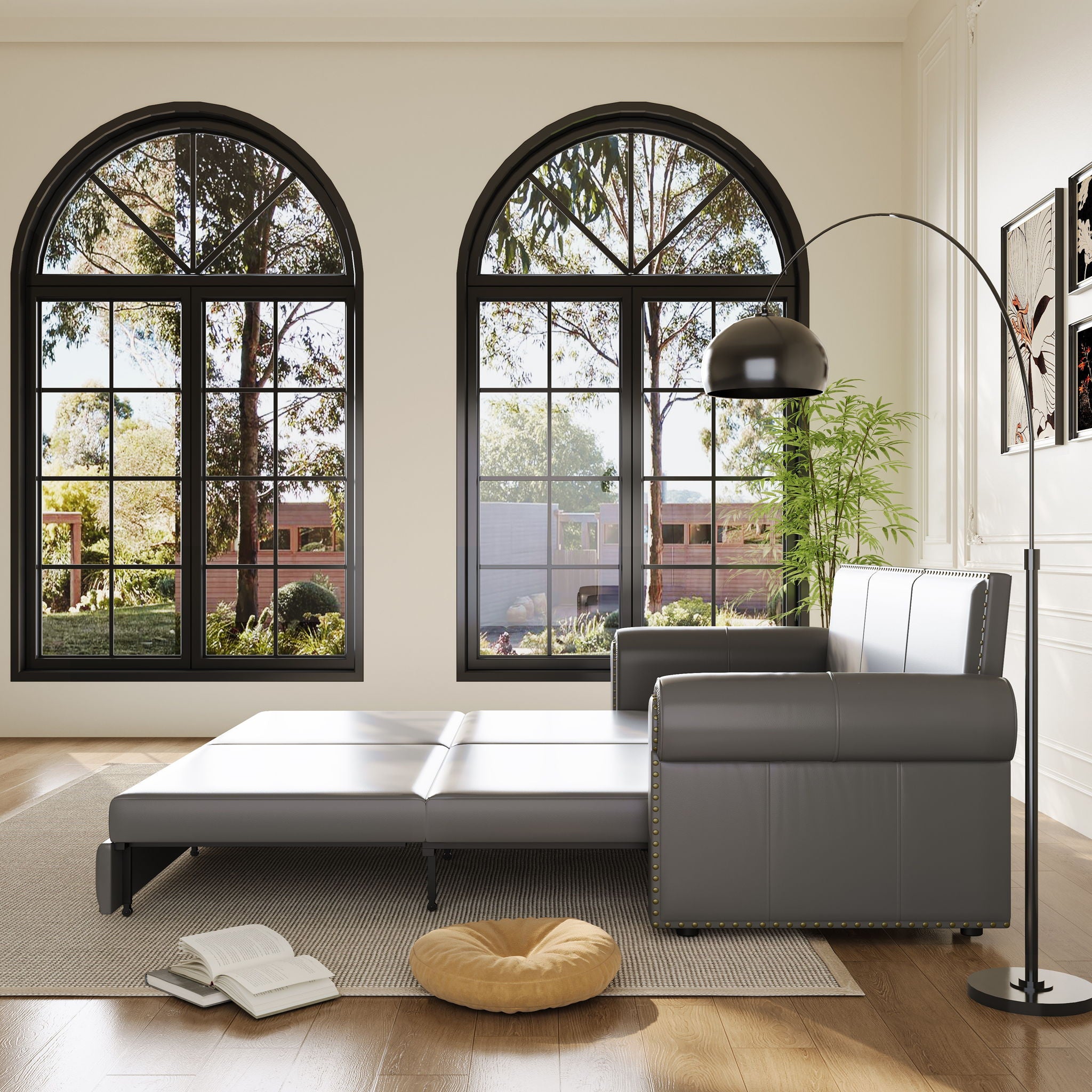 - Suitable for any scene: This multifunctional pull-out sofa bed can be placed in living room and bedroom, it can be used for guests or children's bed. Mechanism to ensure conversion between seating/sleeping positions, modern design and space saving.
