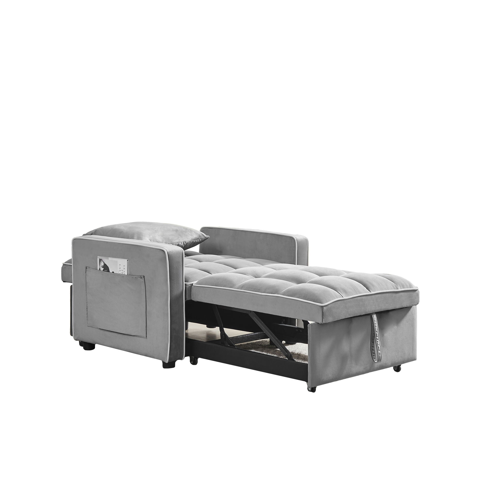 Modern Velvet 3 In 1 Sofa Bed Chair Recliner - Gray