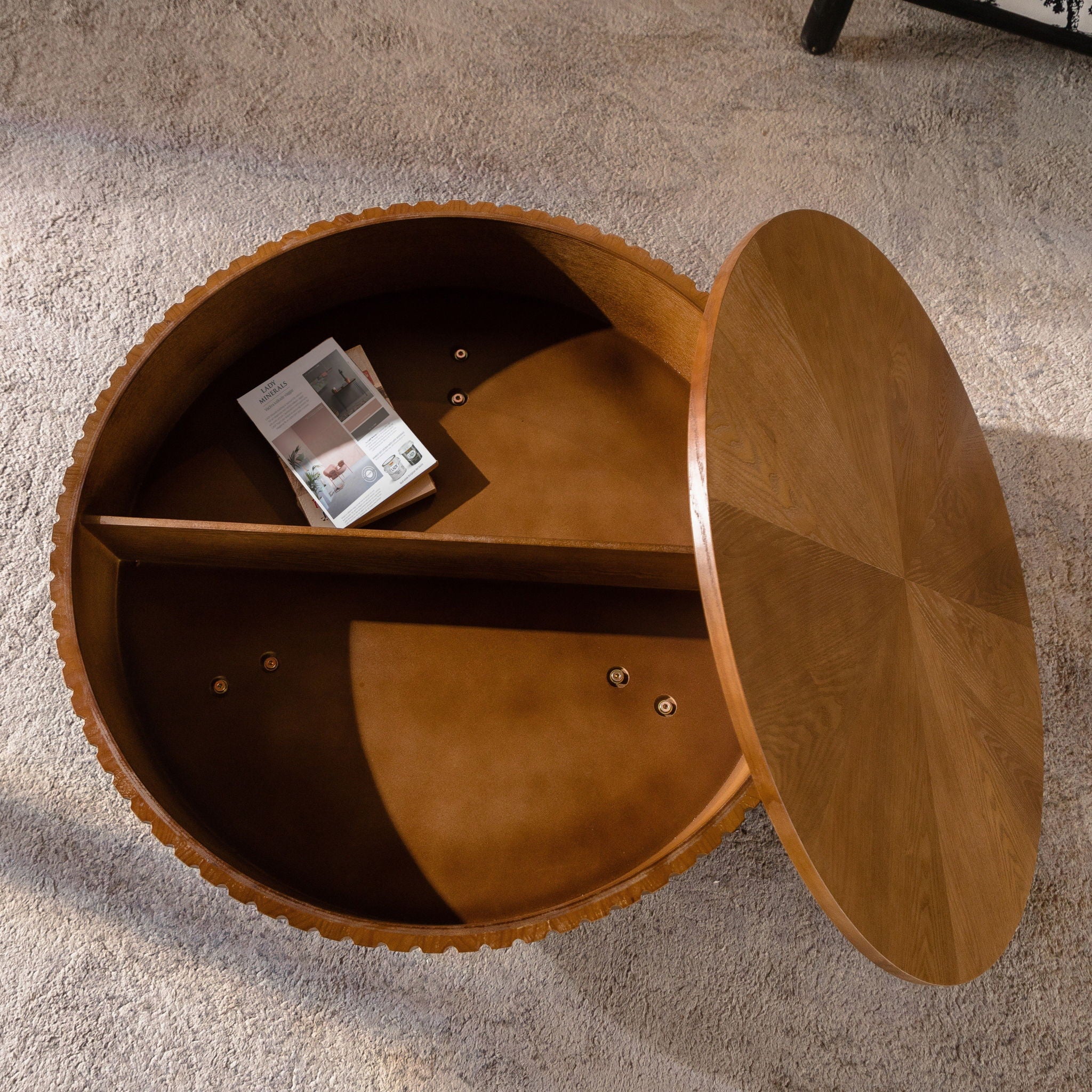 Round Coffee Table With Storage Space - Natural