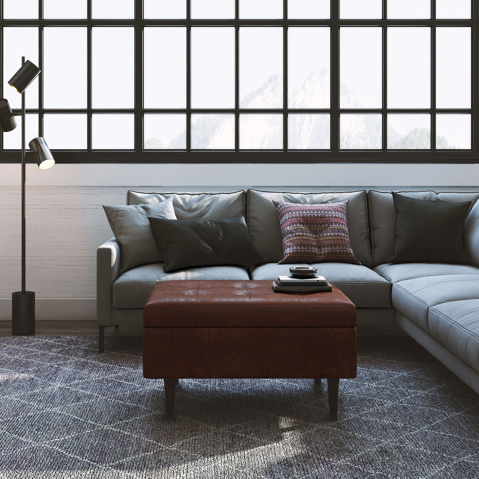 Shay - Small Coffee Table Storage Ottoman - Distressed Saddle Brown