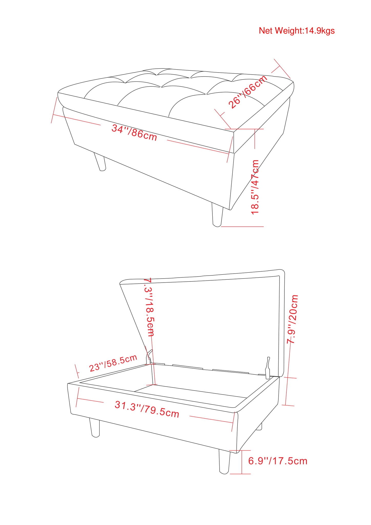 26.0"W x 34.25"D x 18.5"H - 32.1 lb