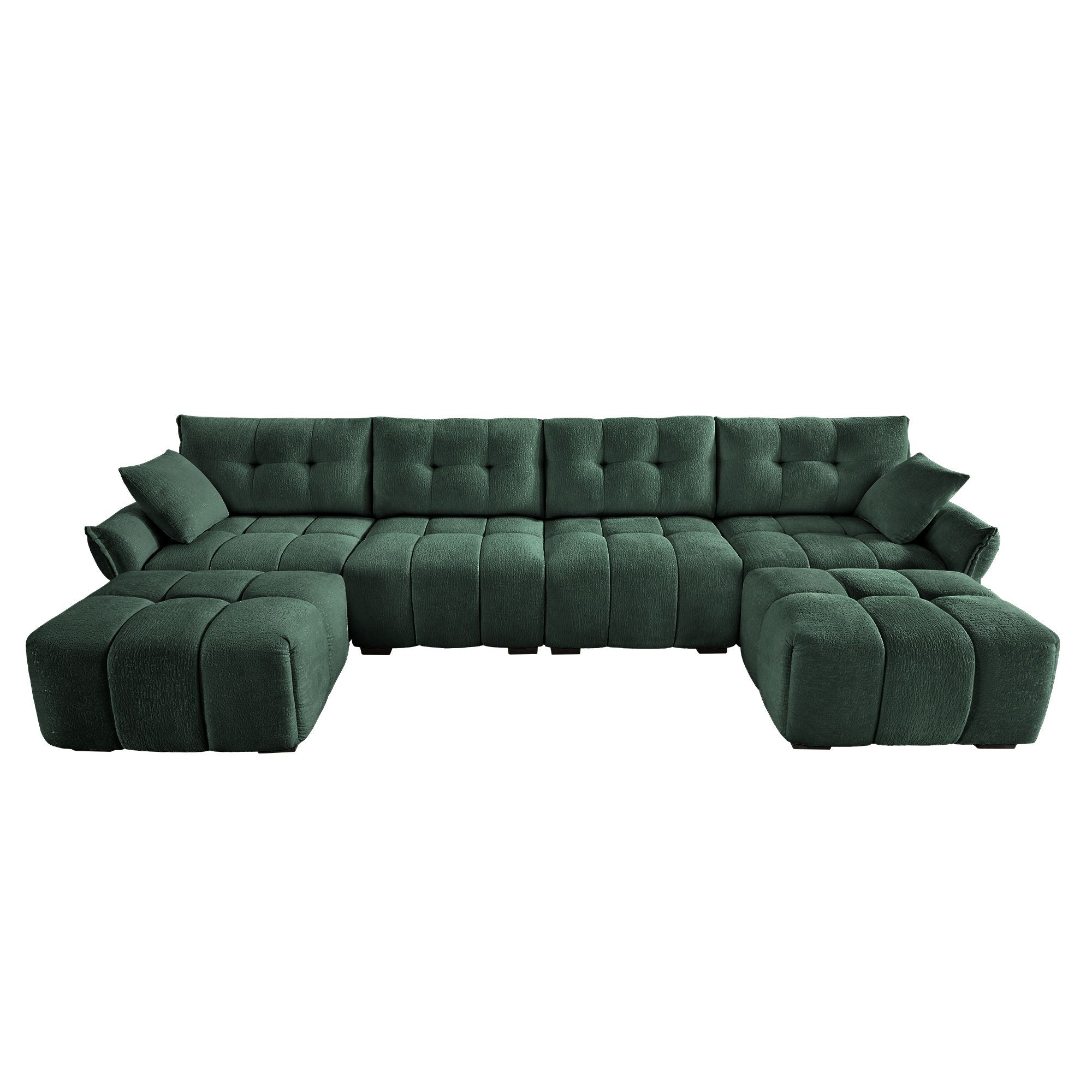 Sofa Set With Ottoman And Pillows, Textured, High Resilience Cushions