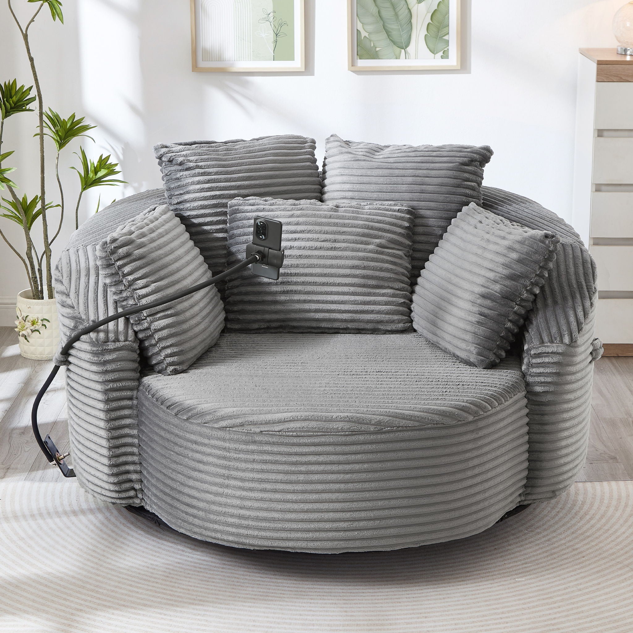 Swivel Accent Barrel Chair With Adjustable Phone Holder, 5 Pillows For Living Room