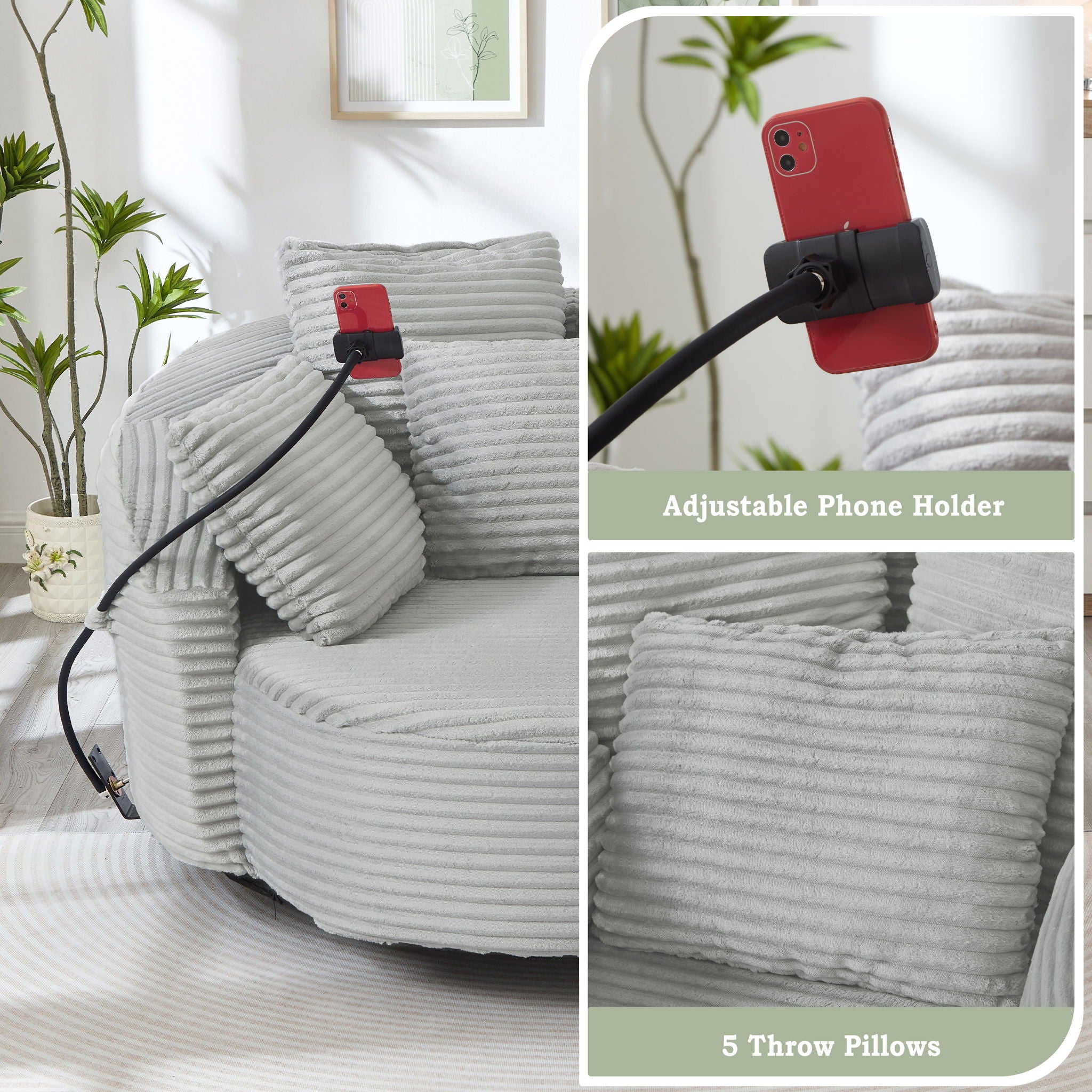 Swivel Accent Barrel Chair With Adjustable Phone Holder, 5 Pillows For Living Room - Light Gray