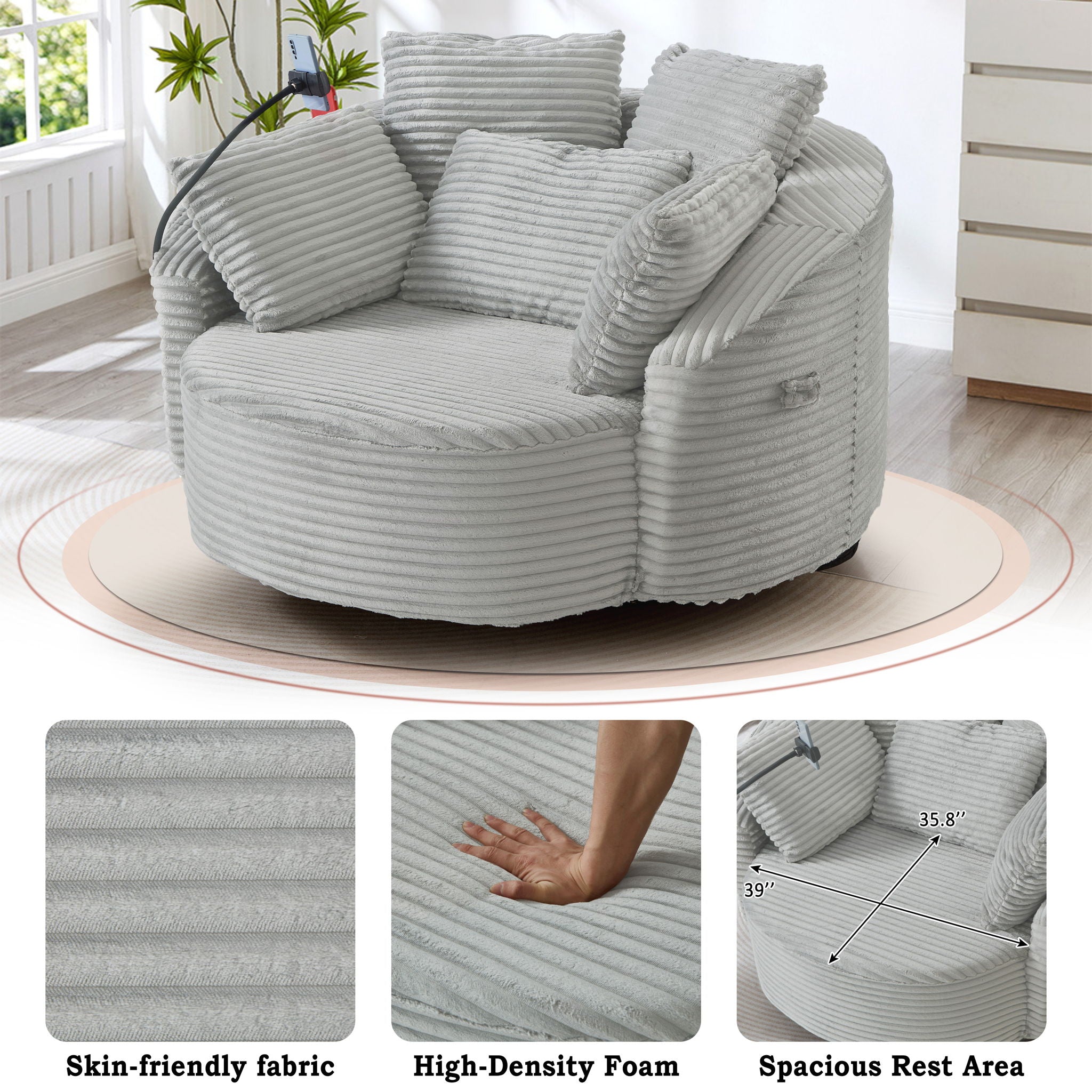 - Coordinated Throw Pillows: Five matching corduroy pillows enhance comfort and complement the chair's aesthetic.