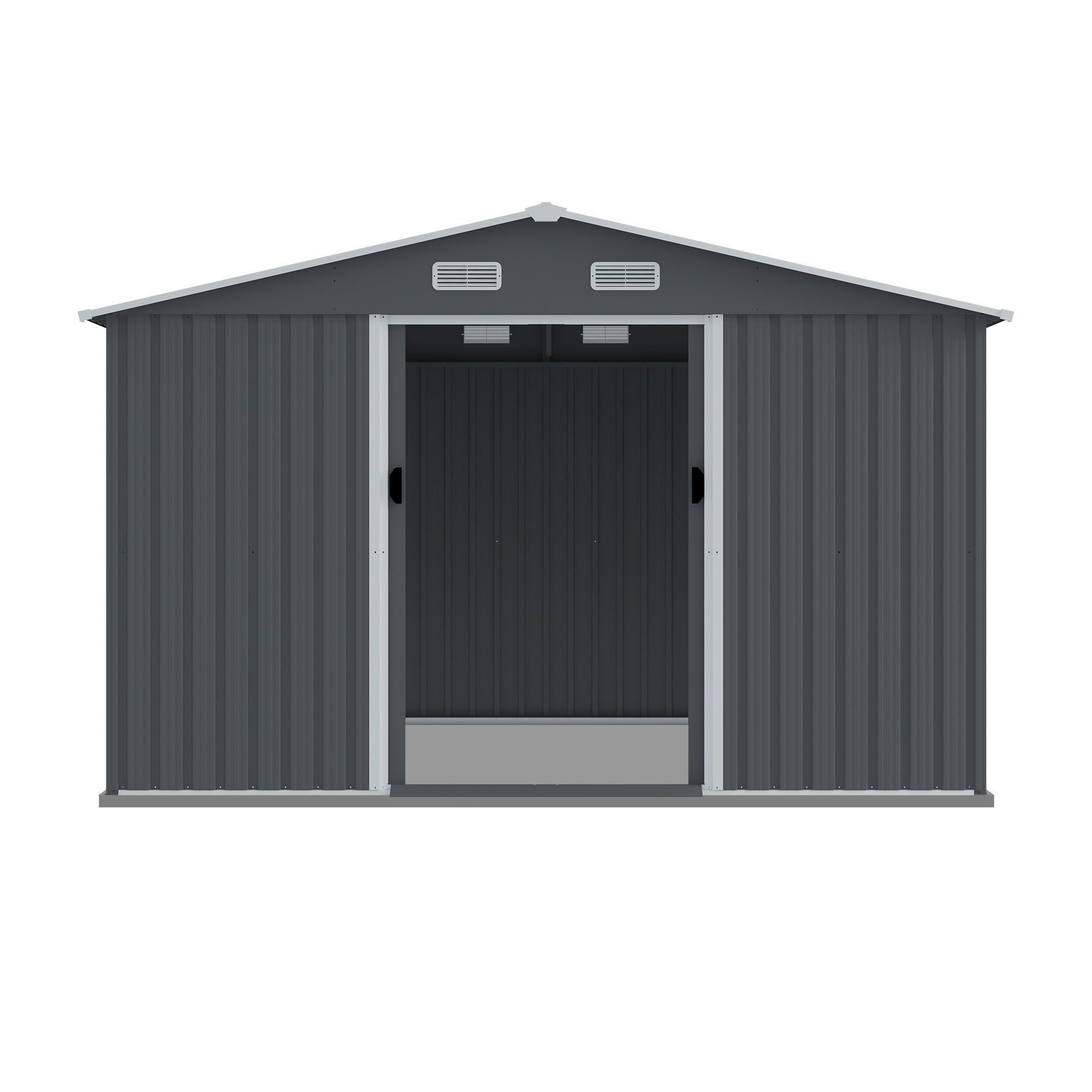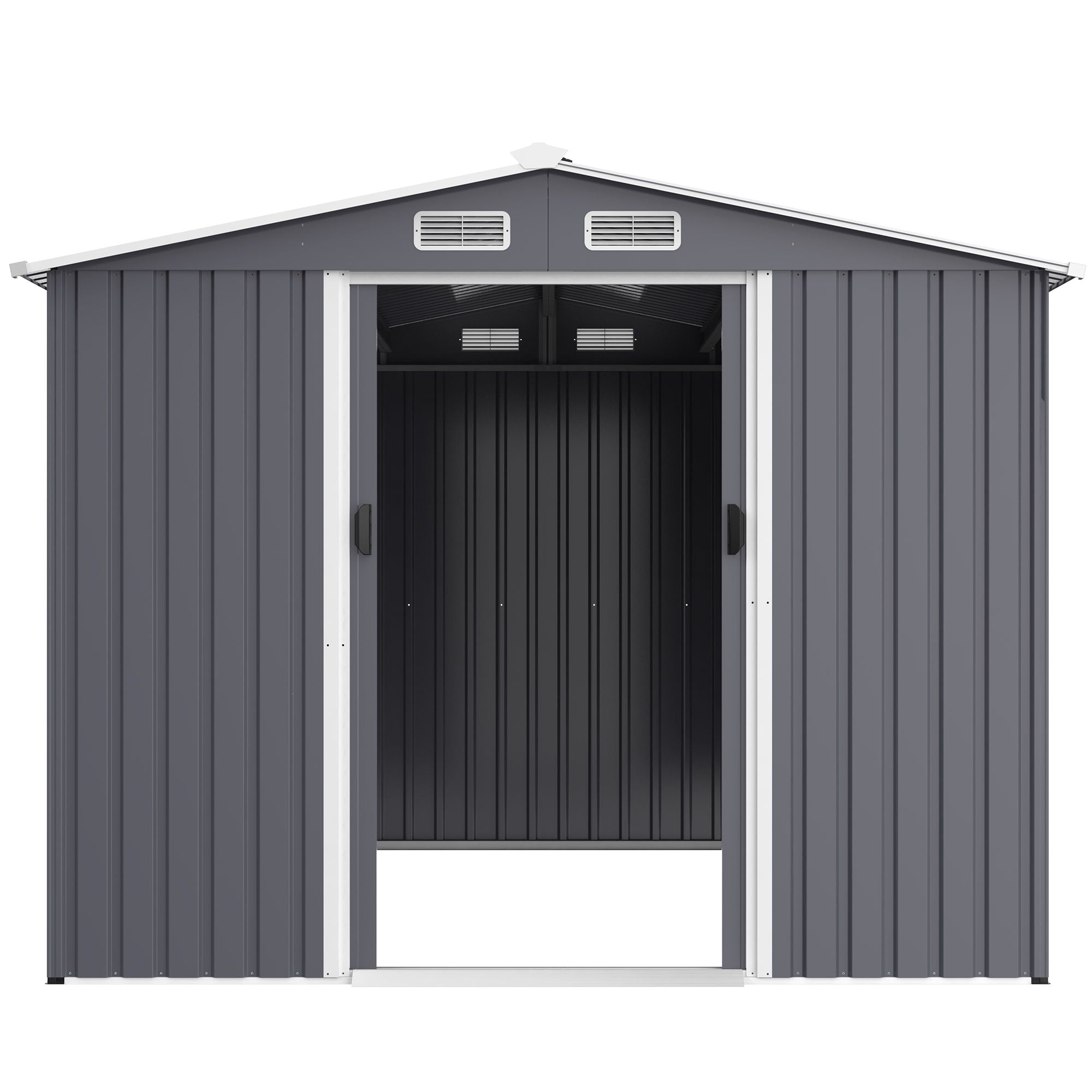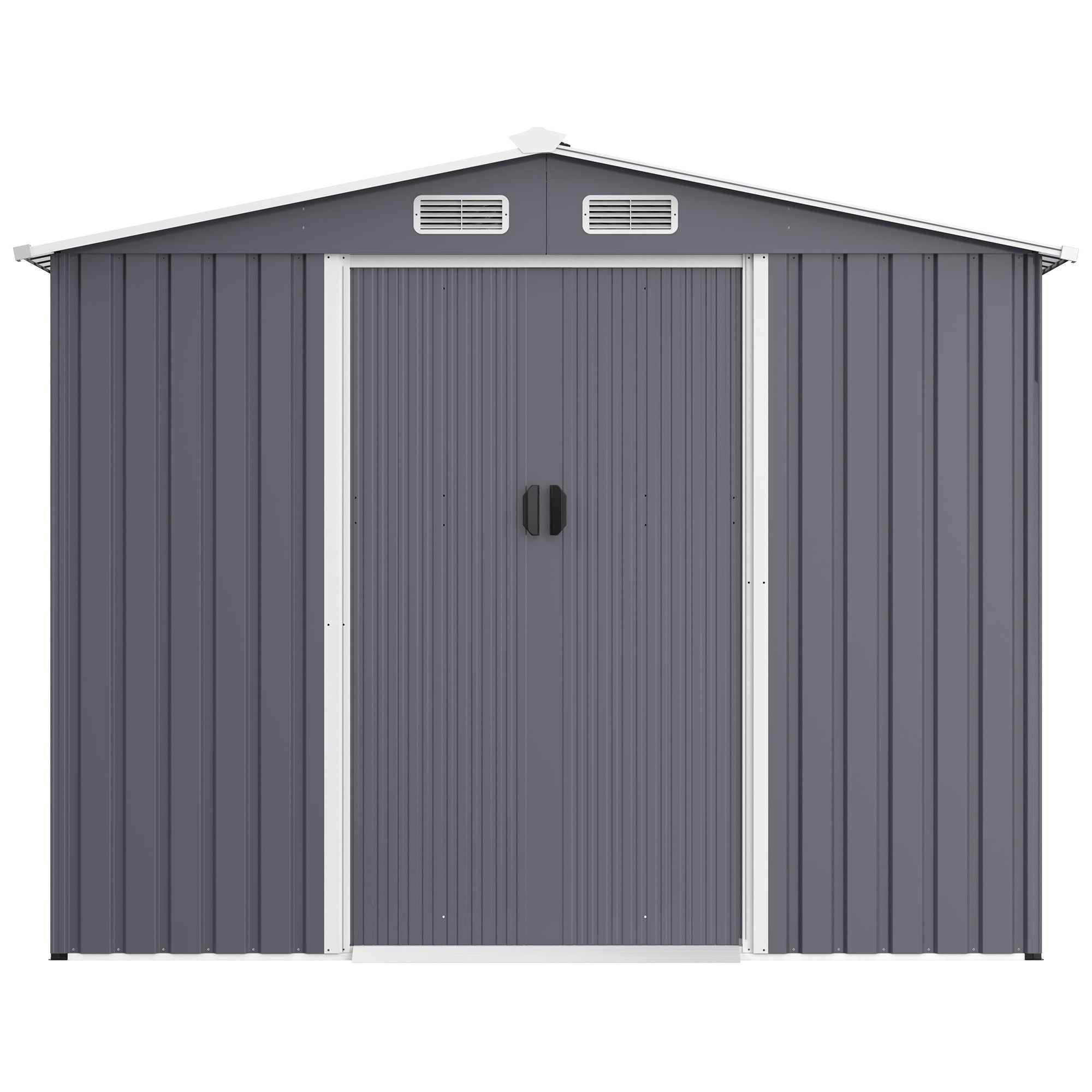 Large Metal Outdoor Storage Shed 8 0 Ft With Sliding Doors And Air Vent Steel Construction - Gray
