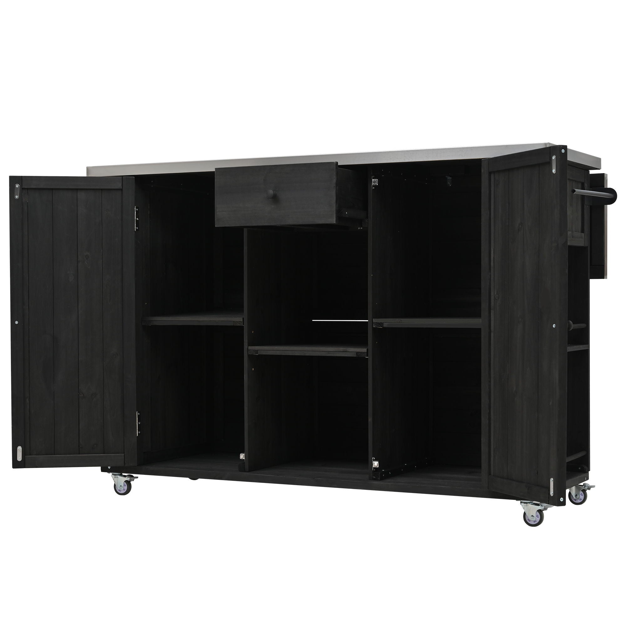Outdoor Kitchen Island Fir Wood Kitchen Island With Stainless Steel Top, Ample Storage Space, Towel And Spice Racks And A Bottle Opener For Outdoor - Black