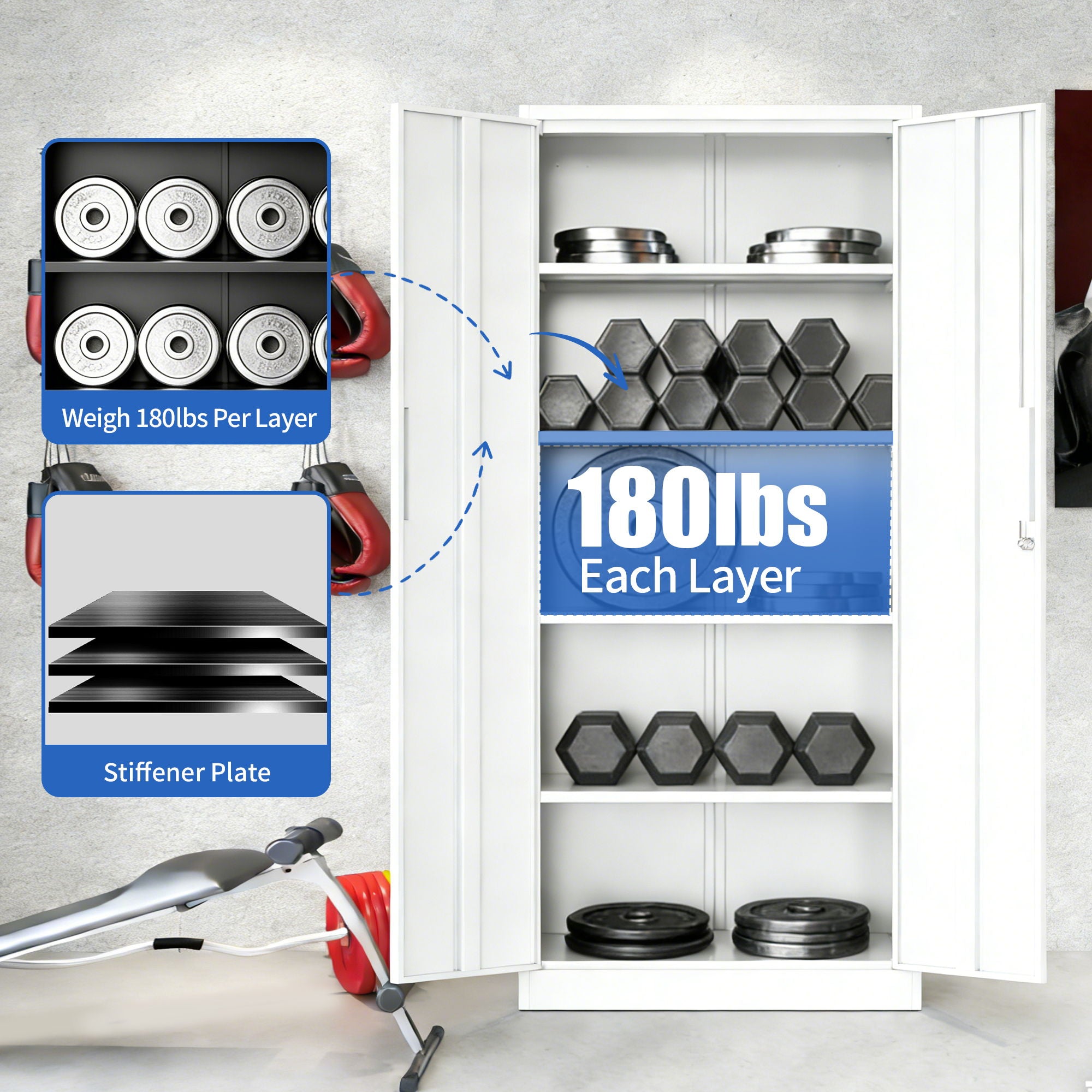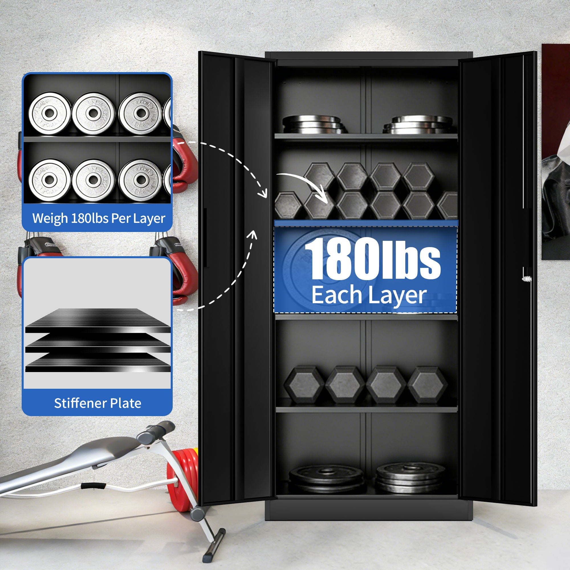- HEAVY-DUTY STEEL CONSTRUCTION: Crafted from premium cold-rolled steel, this metal storage cabinet features an integrated reinforced heavy-duty metal frame capable of holding up to 180 lbs per shelf.