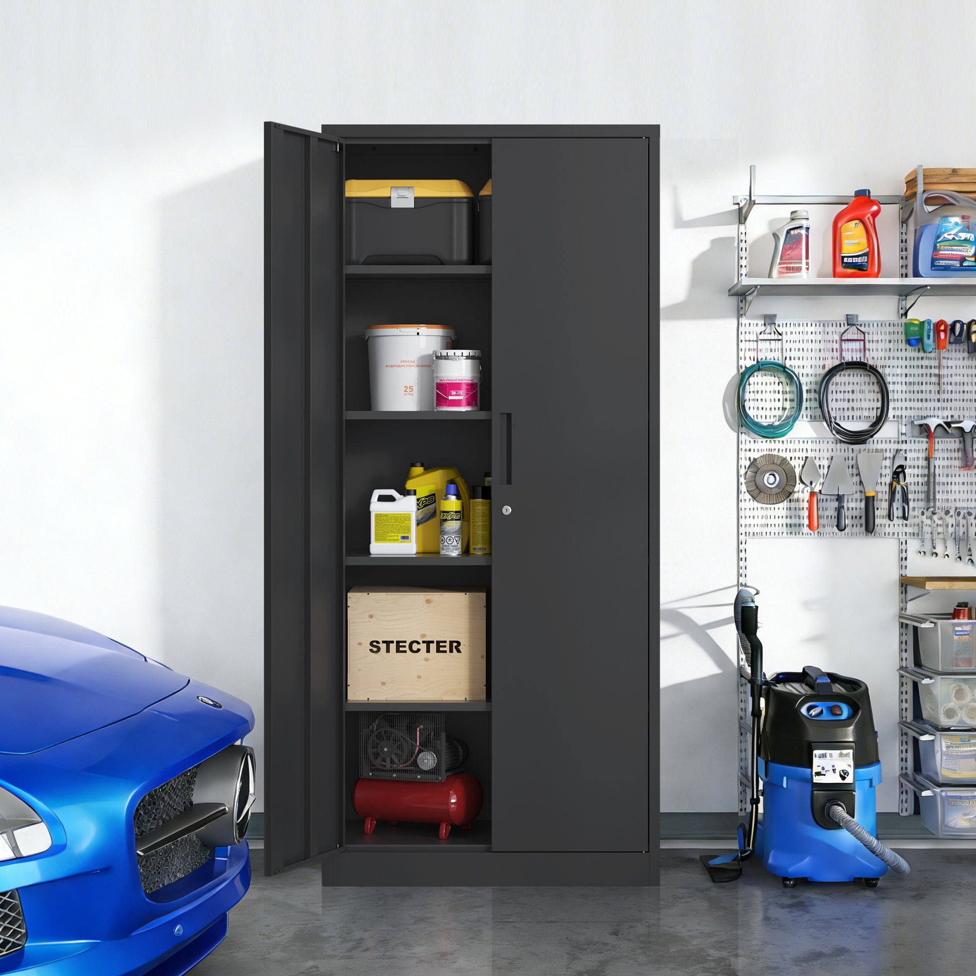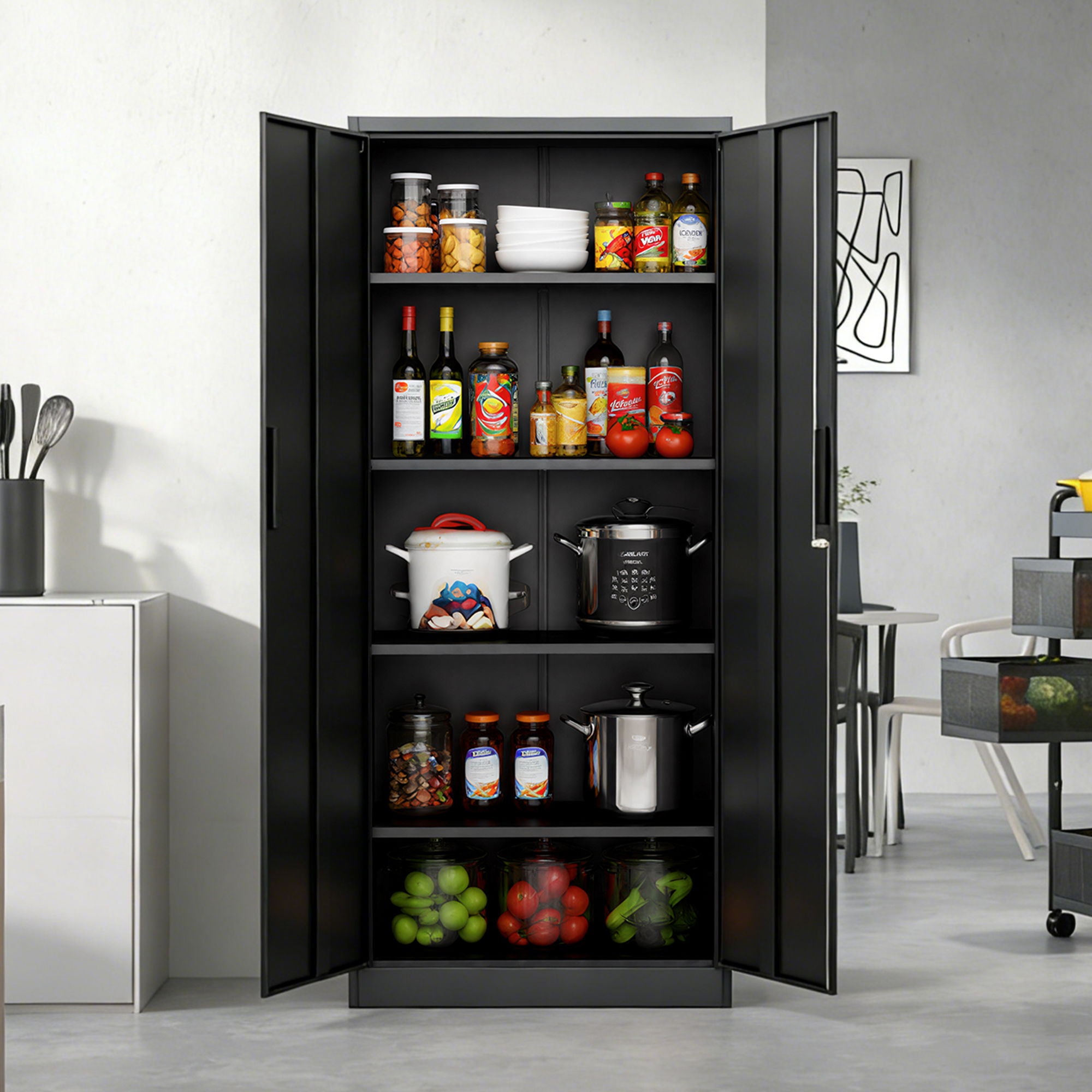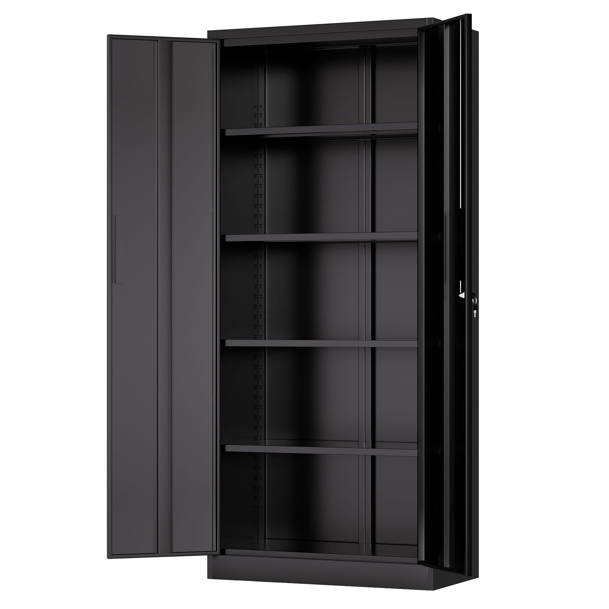 Storage Tool Locking Cabinet & Doors And 4 Shelves For Garage Storage - Black