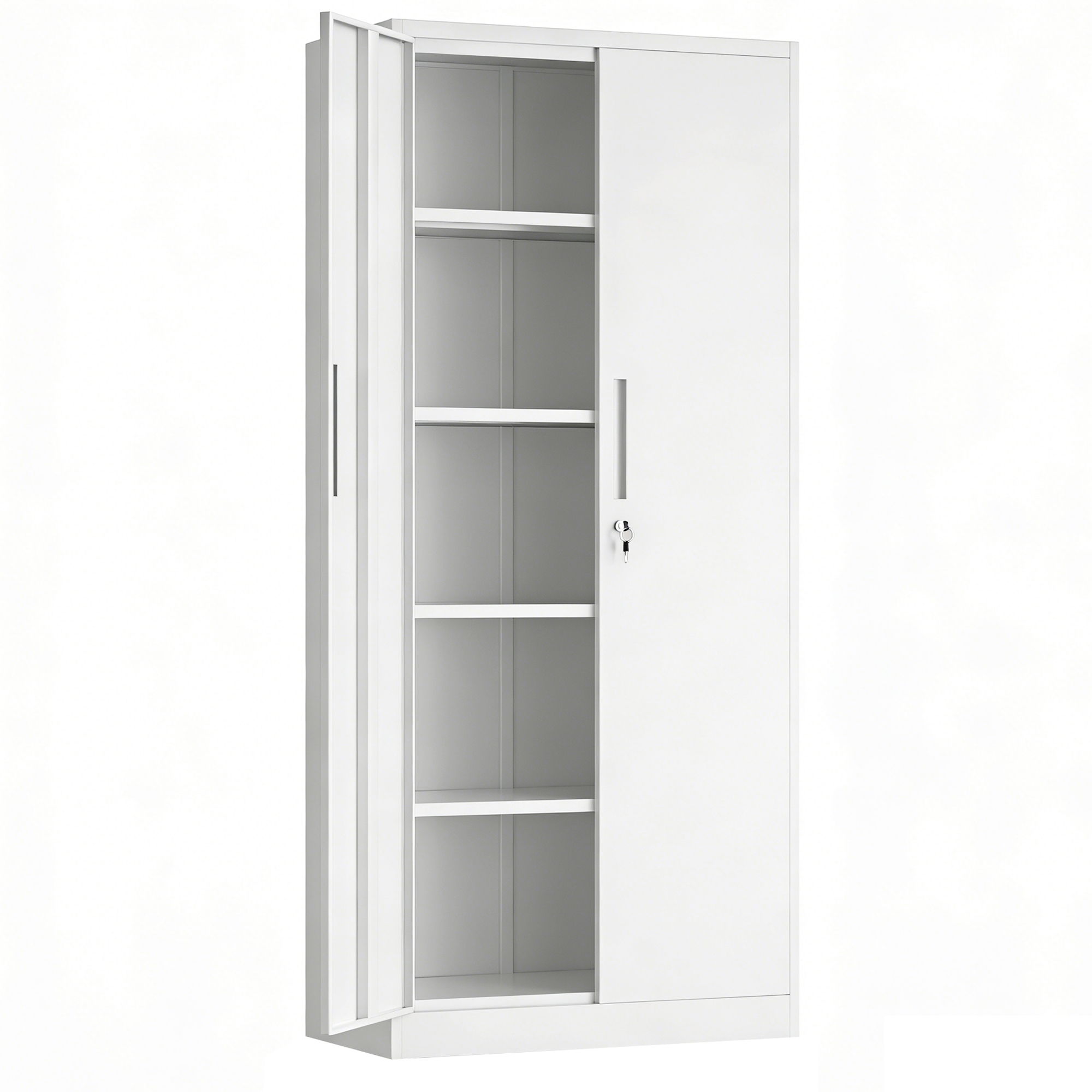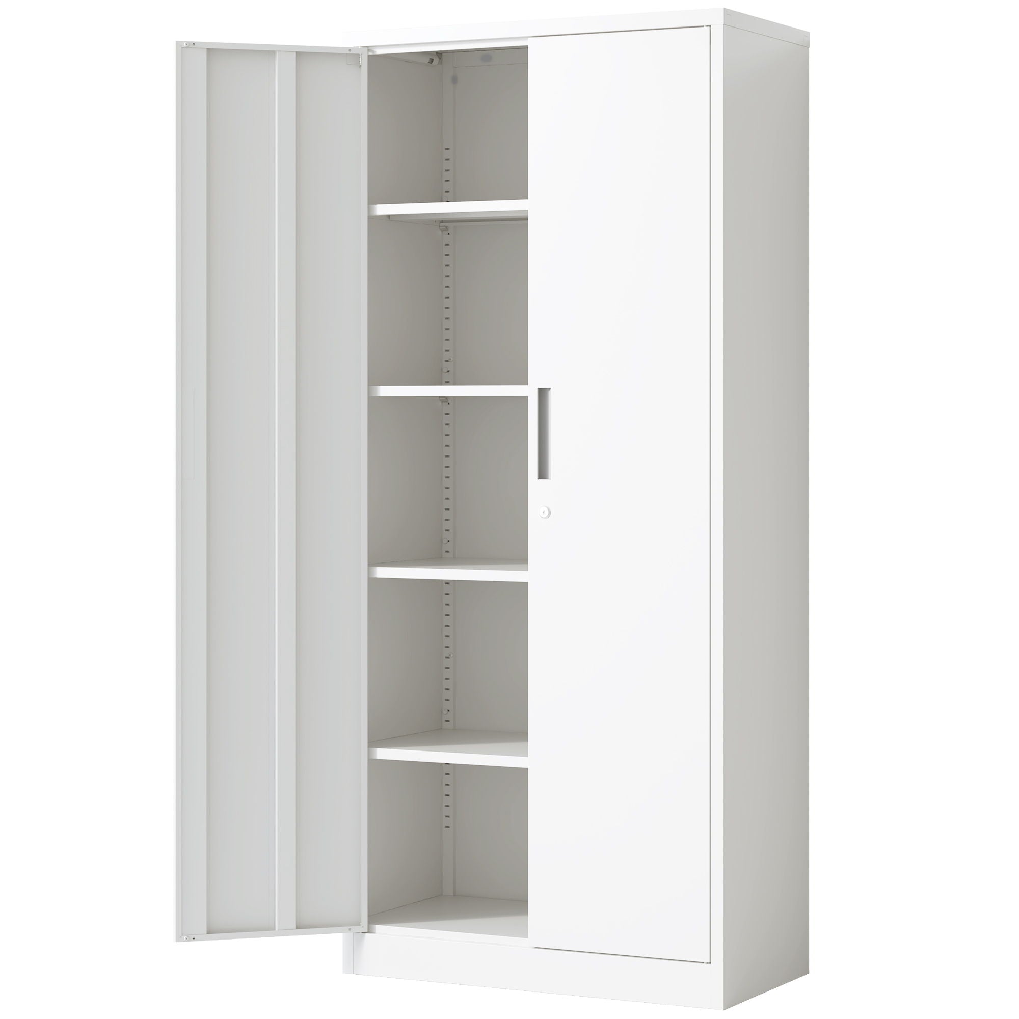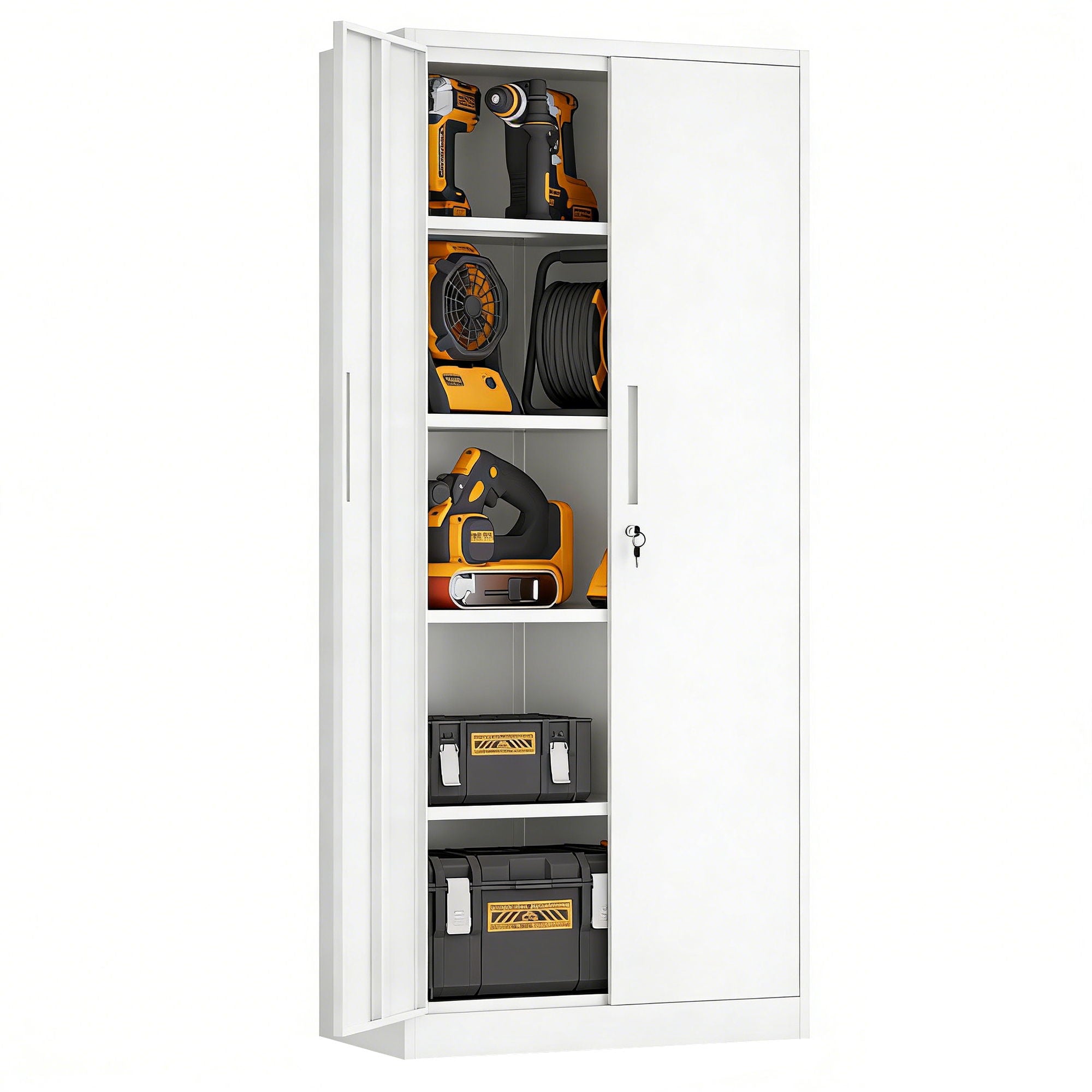 Storage Tool Locking Cabinet With Doors And 4 Shelves For Garage Storage - White