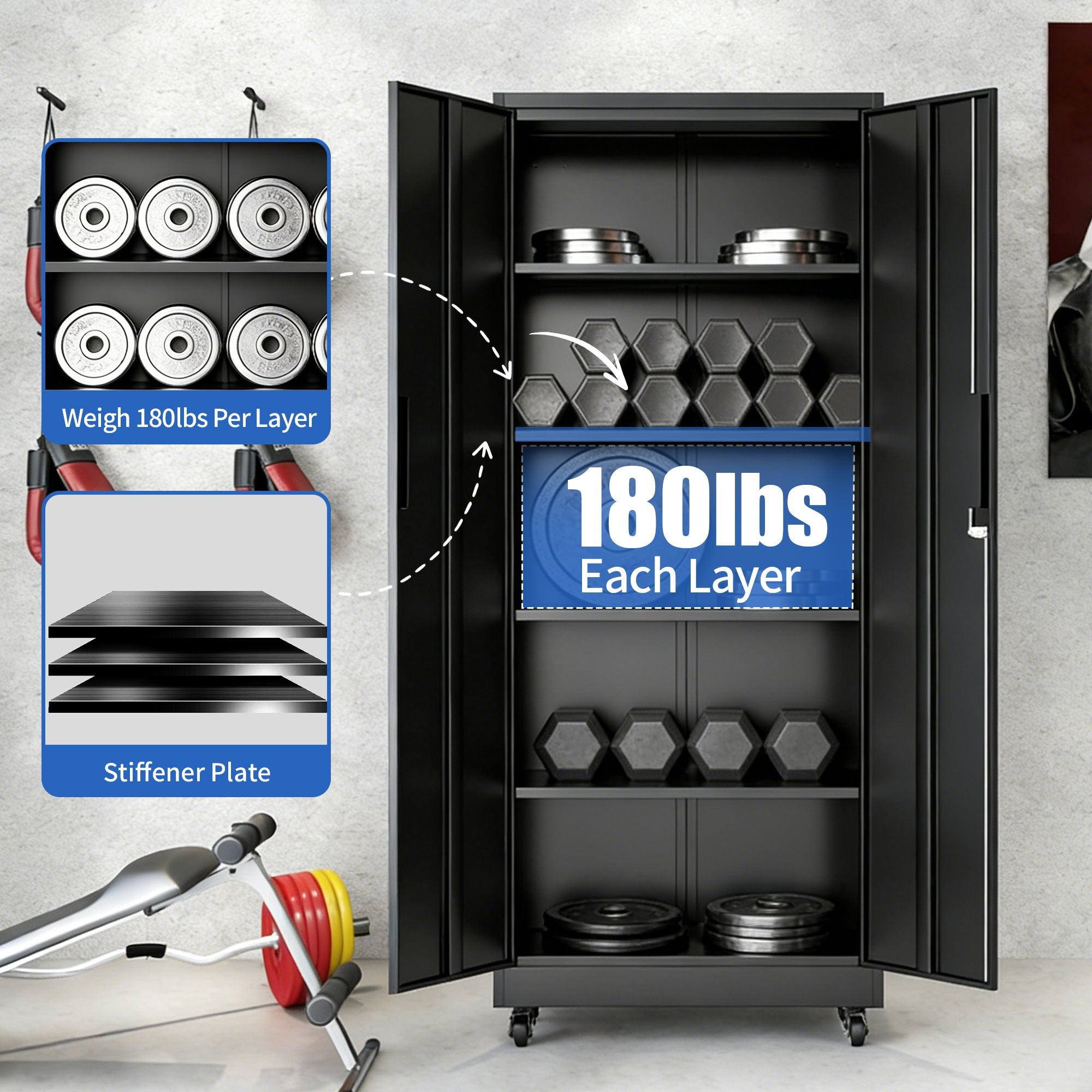• BUILT TO CARRY A SHOP'S WORTH OF GEAR, GUARANTEED FOR YEARS-Stop worrying about shelves bending or doors sagging under heavy loads. Engineered with commercial-grade, powder-coated cold-rolled steel, this cabinet is ruggedized for the toughest conditions.
