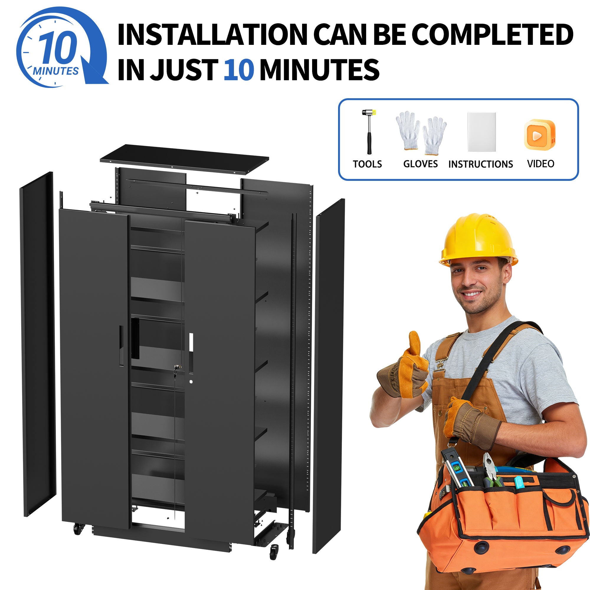 • ASSEMBLE YOUR DREAM GARAGE IN UNDER 30 MINUTES, ALONE-We engineered the hassle out of setup. All tool included and clear instructions, you can go from box to organized powerhouse quickly and easily. The magnetic door closure ensures smooth operation, whil