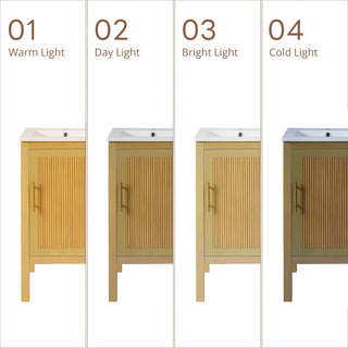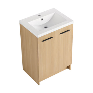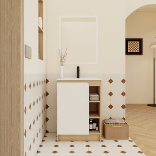 Freestanding Bathroom Vanity With Thin Rim Sink, Single Door With 4 Tier Open Shelves - Light Oak / White