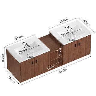 Floating Bathroom Vanity With Sink, Wall Mounted Double Door Storage