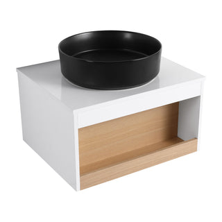 Floating Bathroom Vanity With Vessel Sink With Open Shelf Storage