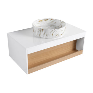 Floating Bathroom Vanity With Glossy Round Vessel Sink