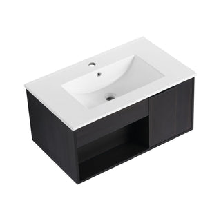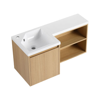 Wall Mounted Floating Bathroom Vanity With Open Shelf & Soft Close Door