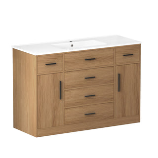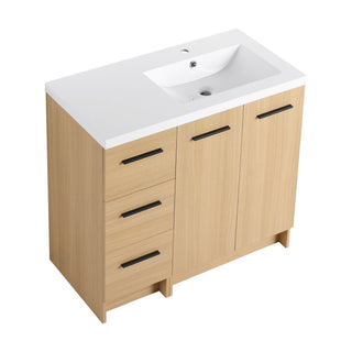 Bathroom Vanity With Ceramic Sink, Soft Close Doors, Flip Drawer, Double Layer Door Shelves