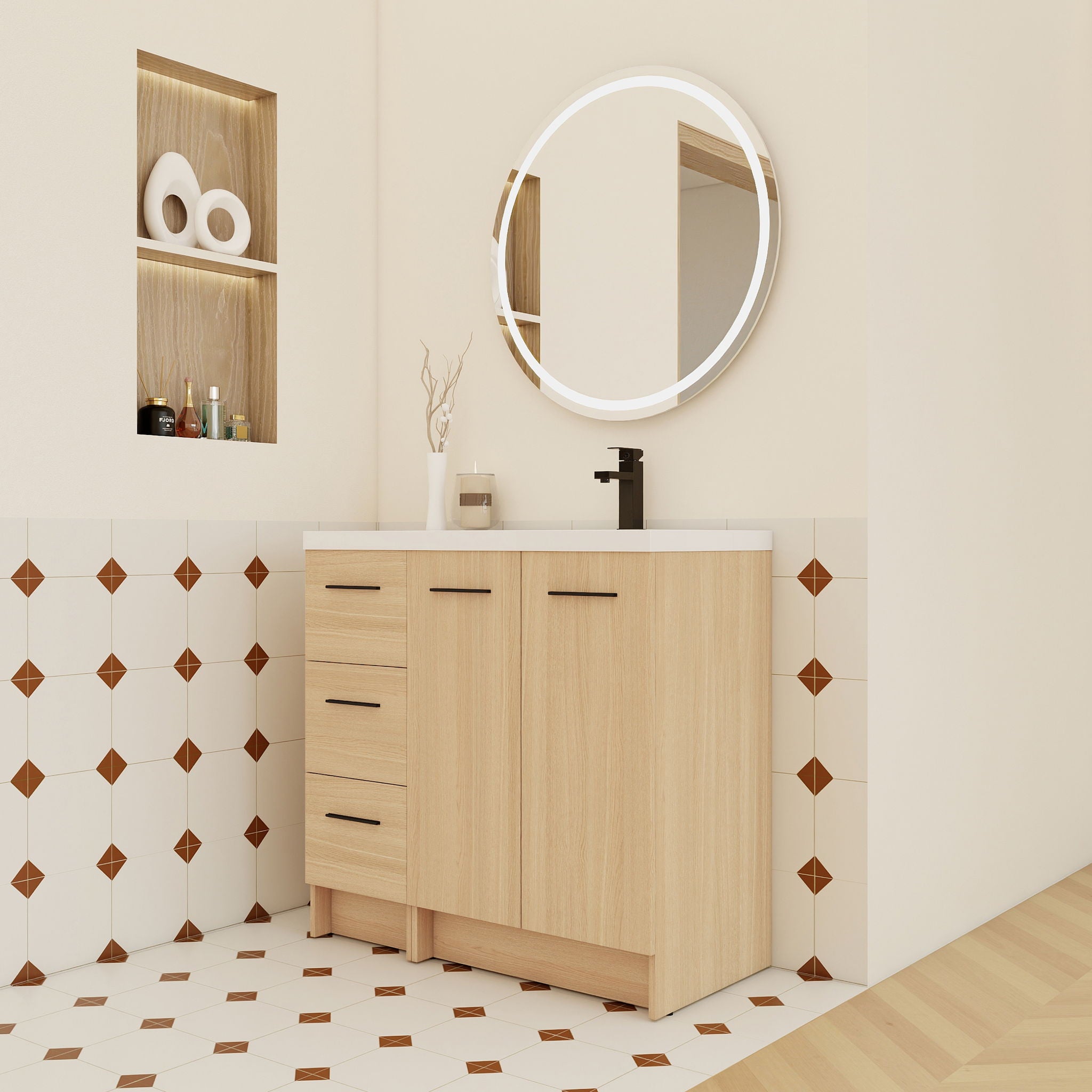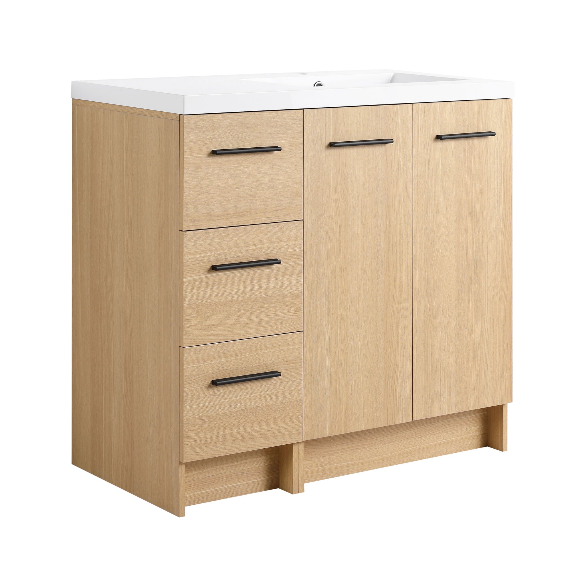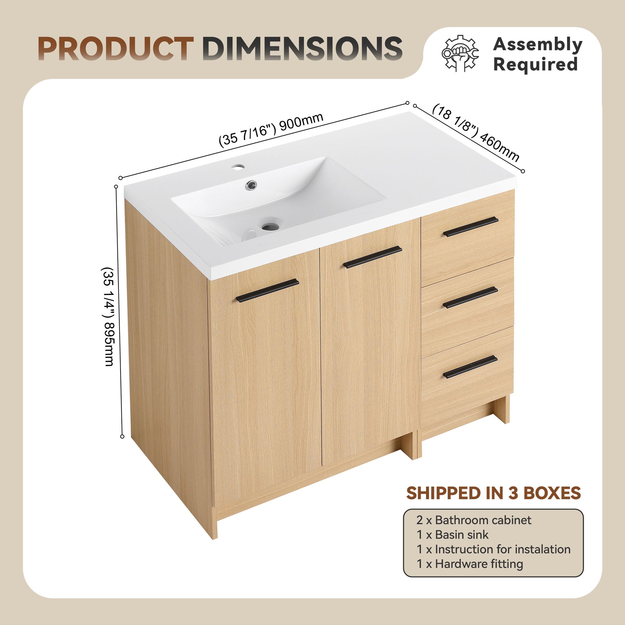 - Modular Vanity – Mixed Assembly Design. The drawer cabinet arrives fully assembled for instant use, while the door cabinet requires assemblyoffering a flexible and practical setup.