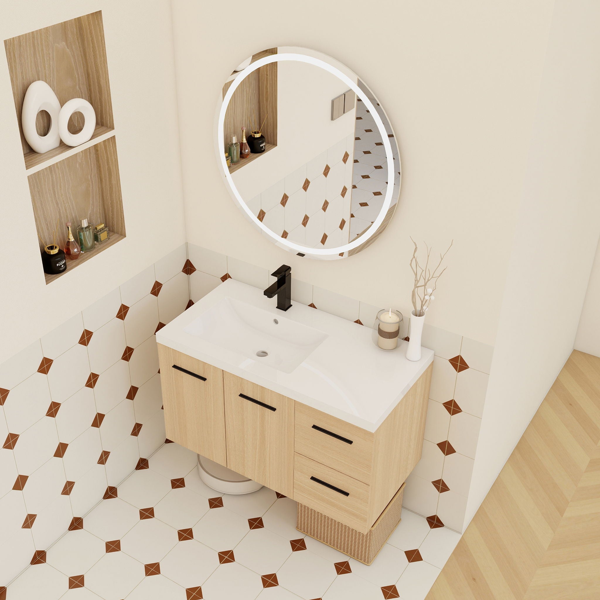 Wall Mounted Floating Bathroom Vanity With Sink, Door & Drawers Modular Cabinet