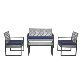 4 Piece Patio Furniture Set With Acacia Wood Table Top And Cushions