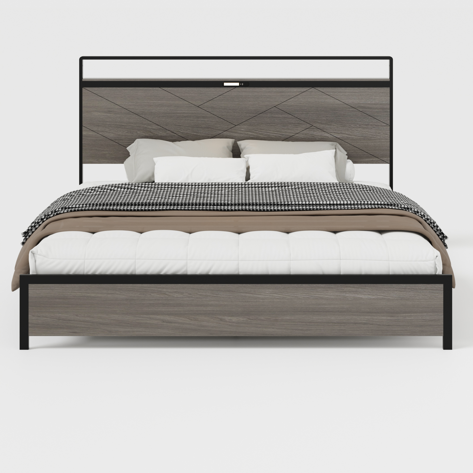 The Ashton Hill Bed showcases a striking mix of materials — metal and wood — that together evoke a refined industrial charm. Its clean lines and natural textures make it a versatile statement piece that suits multiple décor themes.
