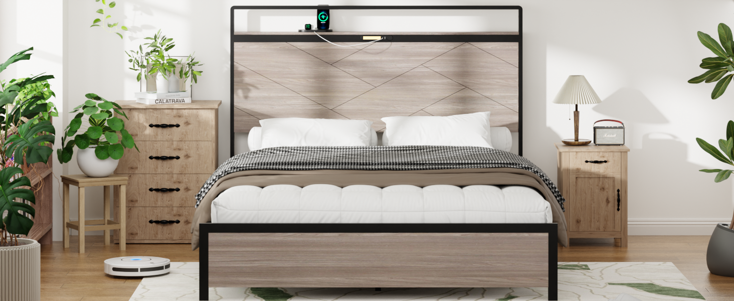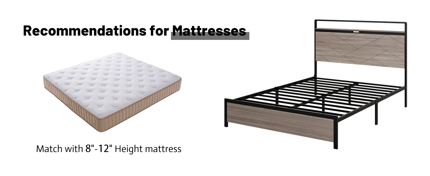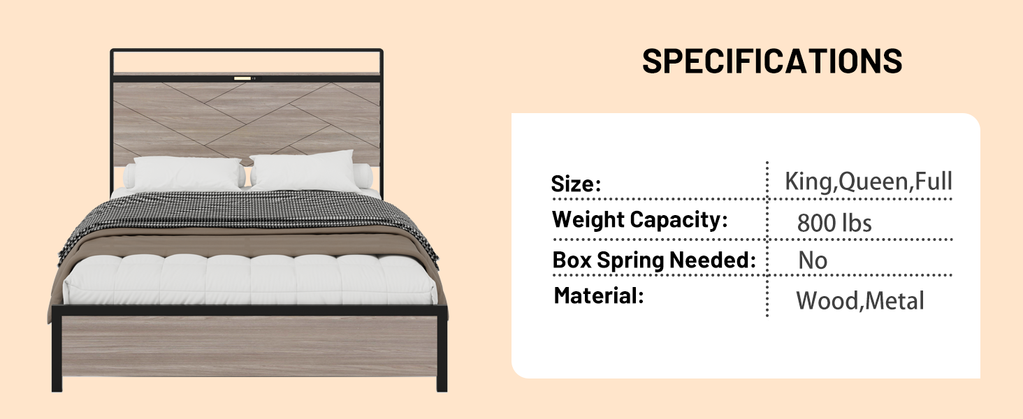 Constructed from high-quality steel, the bed frame provides excellent stability and long-lasting durability. The combination of metal strength and wooden detailing ensures a solid yet stylish sleeping foundation.