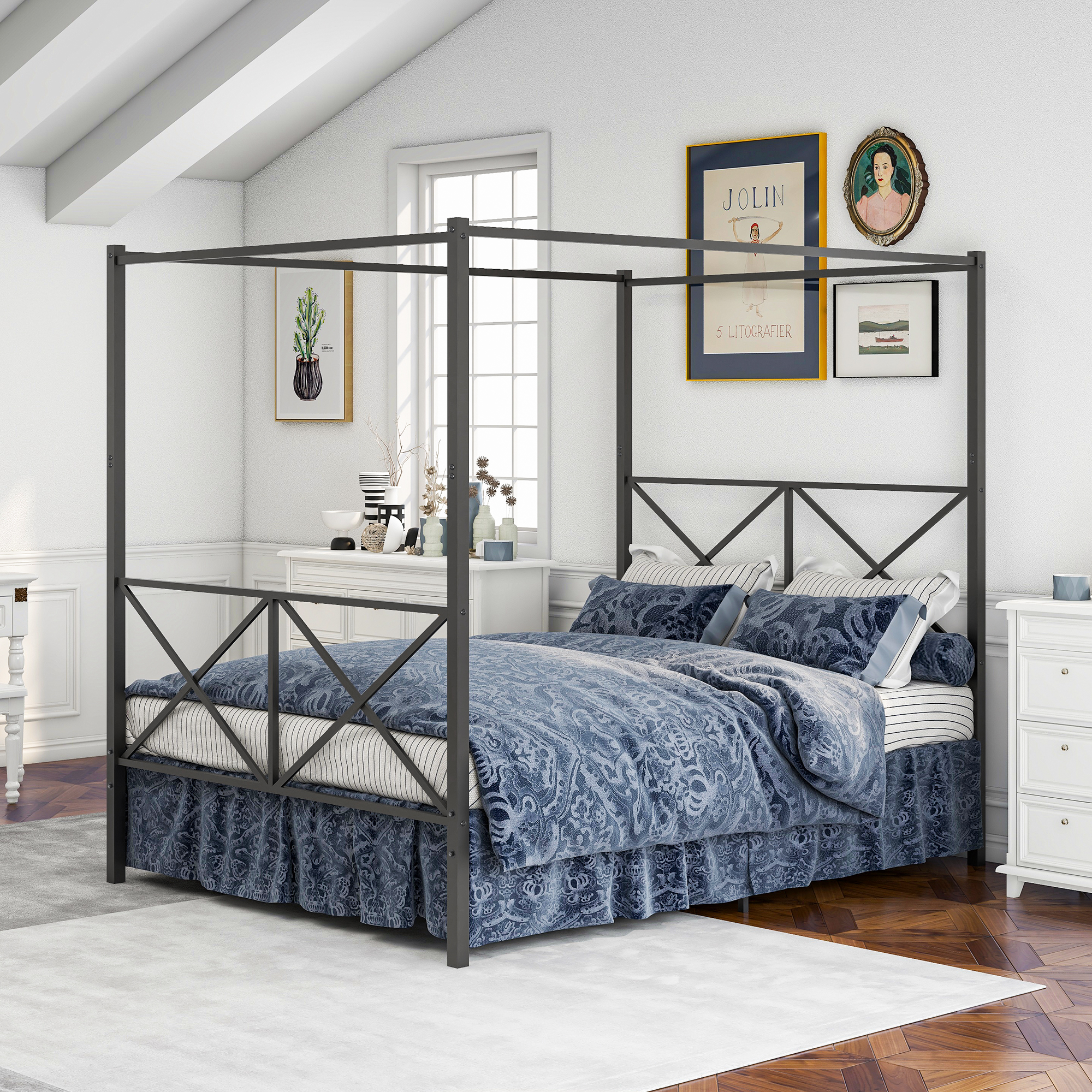Belle Canopy Platform Bed – Elegant European-Style Metal Bed Frame