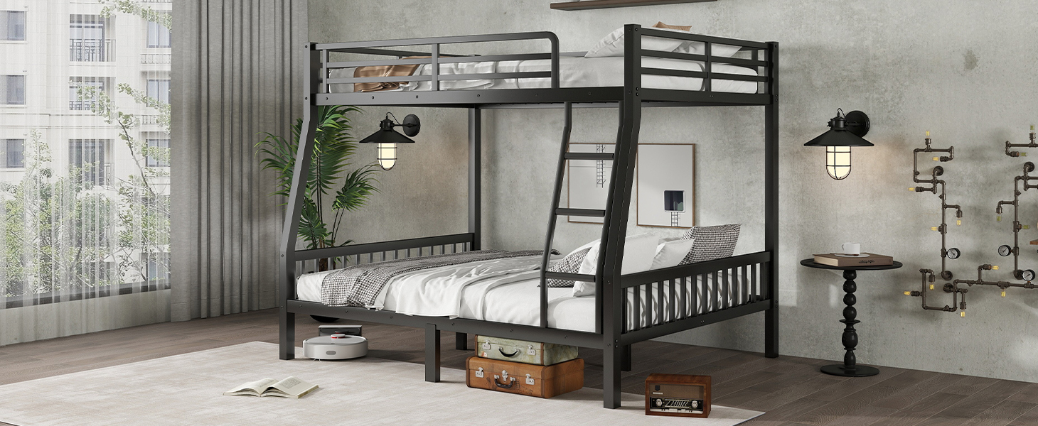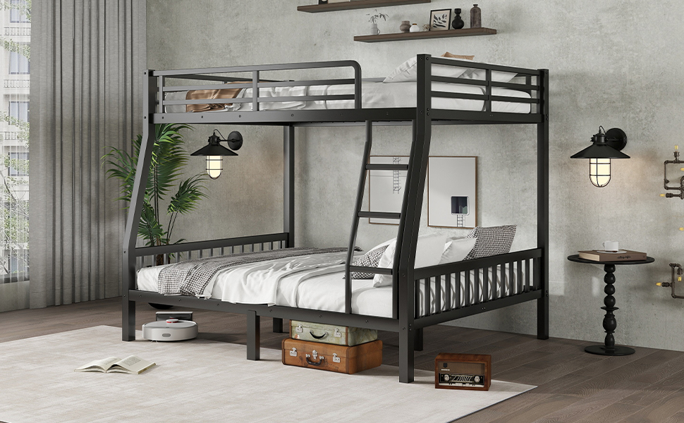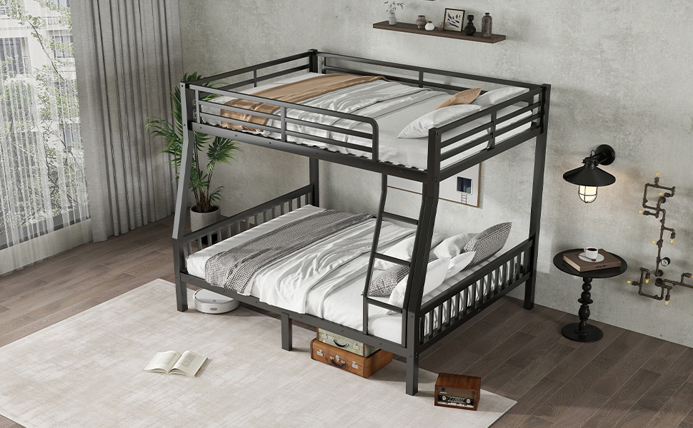 Maximize space and comfort with the Full Over Queen Metal Bunk Bed, a modern and durable sleeping solution designed to combine functionality, safety, and style. Perfect for shared bedrooms, guest rooms, or vacation homes, this bunk bed provides a sturdy and space-efficient design that accommodates both a Full XL and a Queen mattress with ease.