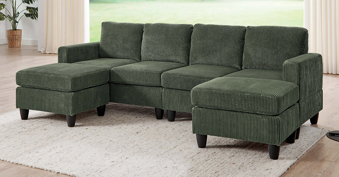 Upgrade your living room with the Savannah Modular Corduroy Sectional Sofa—a stylish fusion of cozy comfort, flexible design, and modern appeal. Wrapped in soft, textured corduroy, this sectional adds warmth and character to any space, while its modular layout allows you to shape your seating exactly the way you like it.