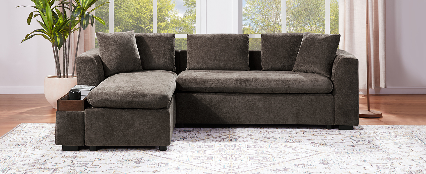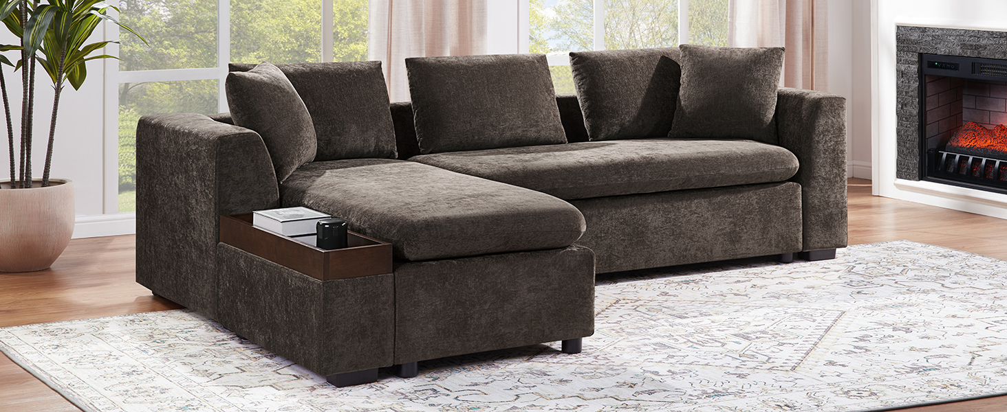 Elevate your home décor with the Sierra 93.7″ Sectional Sofa L-shaped Sofa, a perfect combination of luxury, practicality, and enduring style. Featuring a modern silhouette and upholstered in rich chenille fabric, this sofa provides exceptional comfort and smart storage solutions, making it an ideal anchor for any sophisticated living space.