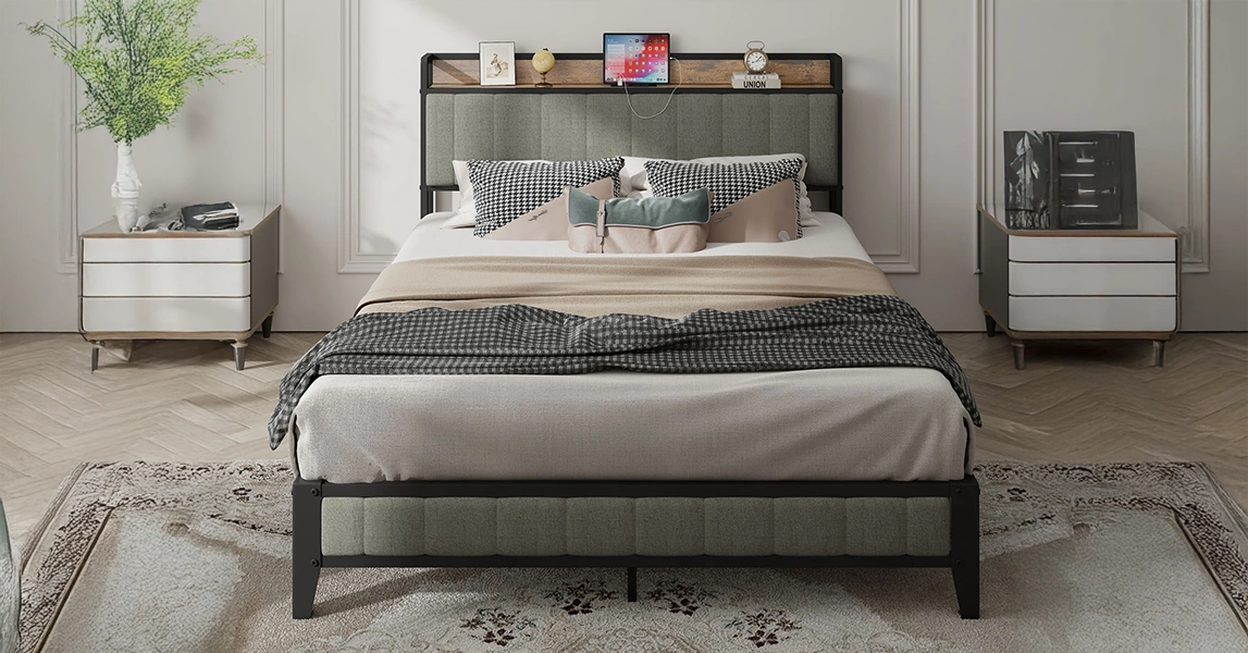 The uniquely designed headboard features 2 Standard Plug Outlets + 2 USB Ports, giving you all the charging power you need without leaving your bed. Whether it’s your smartphone, tablet, smartwatch, lamp, or even your reading glasses, everything stays organized and within easy reach.